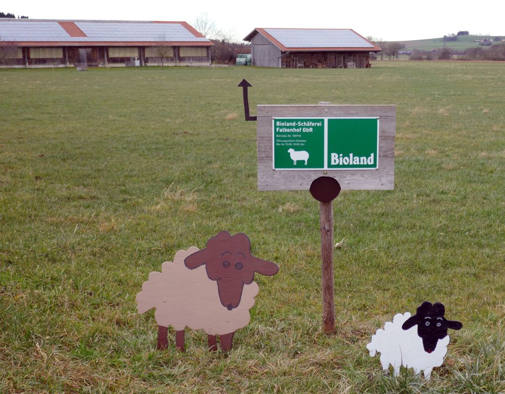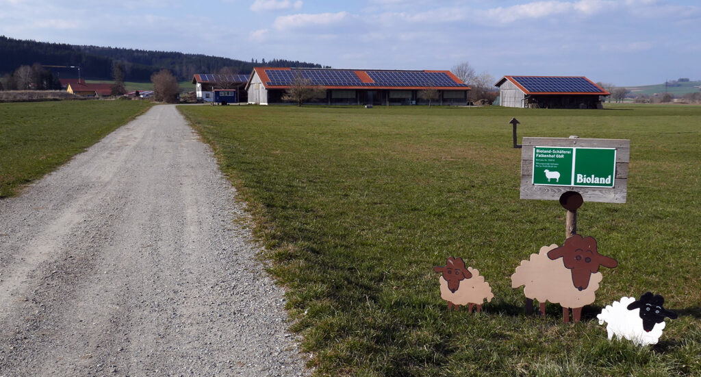 Die Schäferei Falkenhof liegt nördlich von Arnach am Weg Richtung Riedlings.