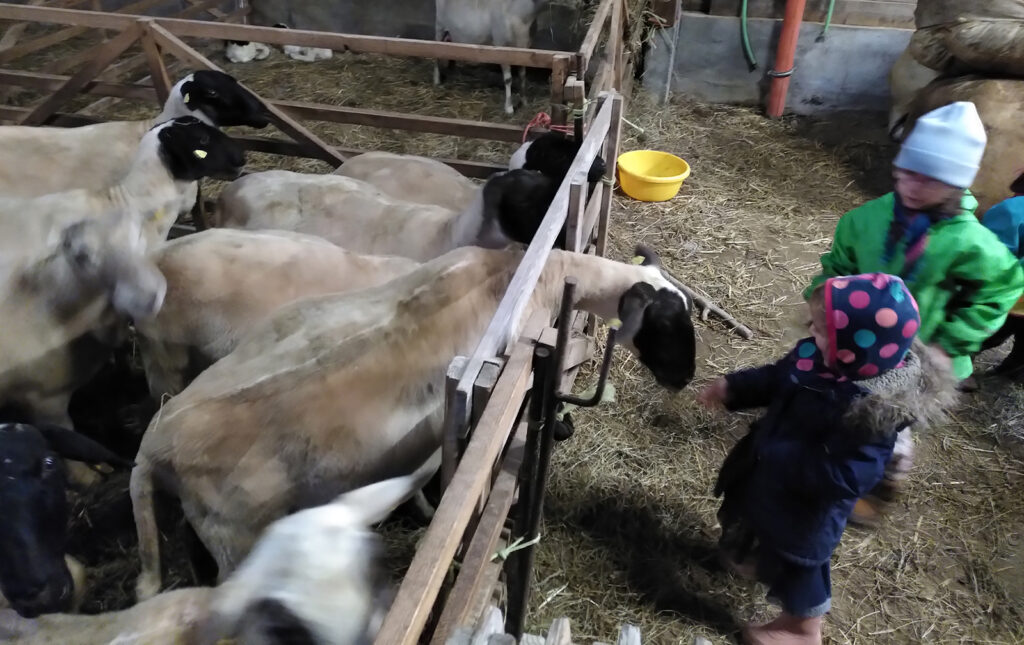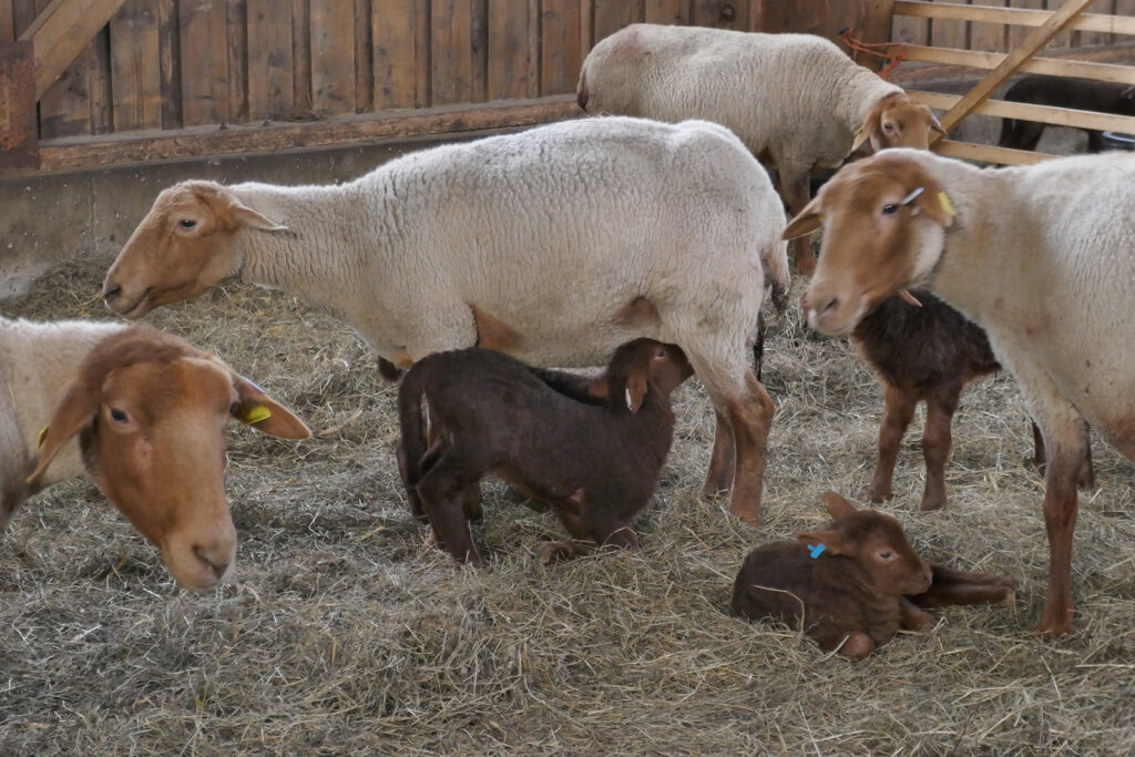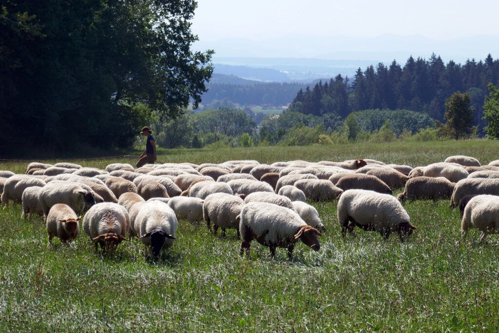 – die Tiere fressen während der Vegetationsperiode frisches Gras und Kräuter, im Winter Heu und Öhmd und bekommen keinerlei Kraftfutter. Die Lämmer bleiben bei Ihren Müttern, saugen deren gute Milch und werden dann in einer ortsnahen Metzgerei geschlachtet.