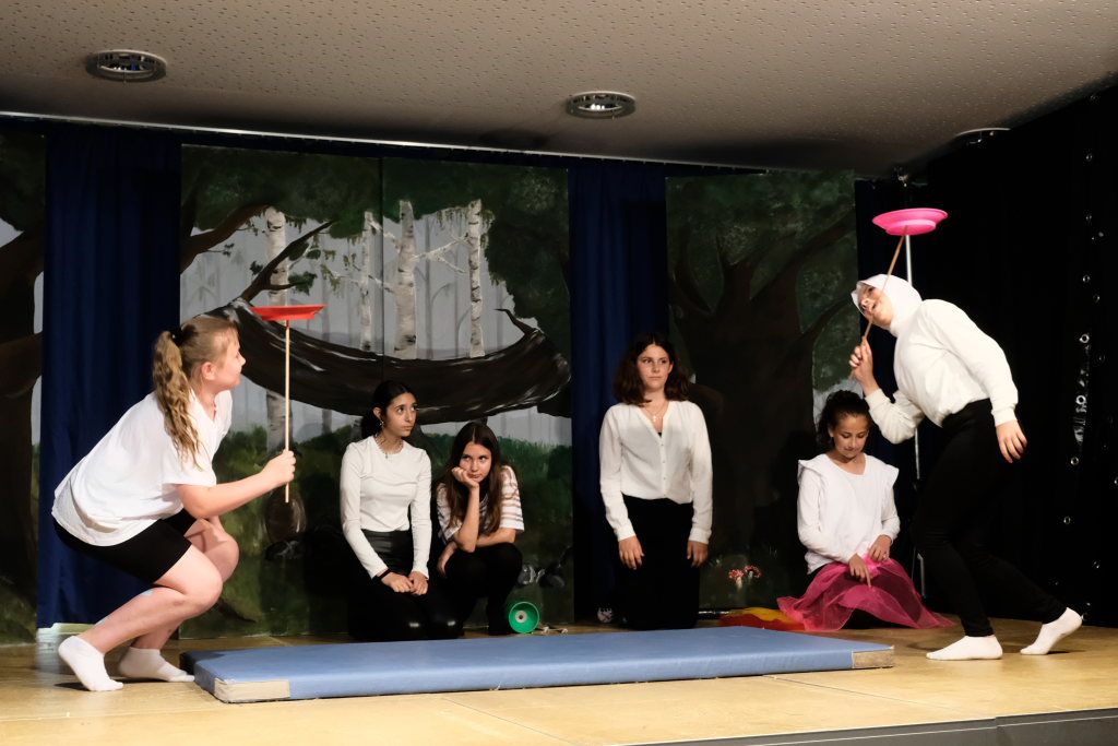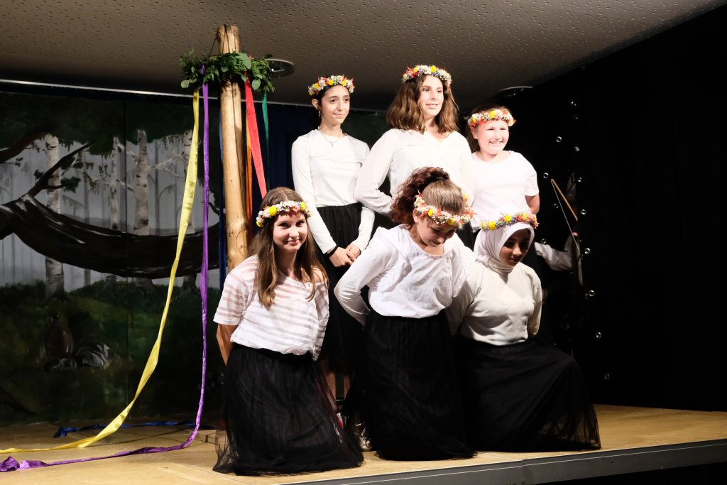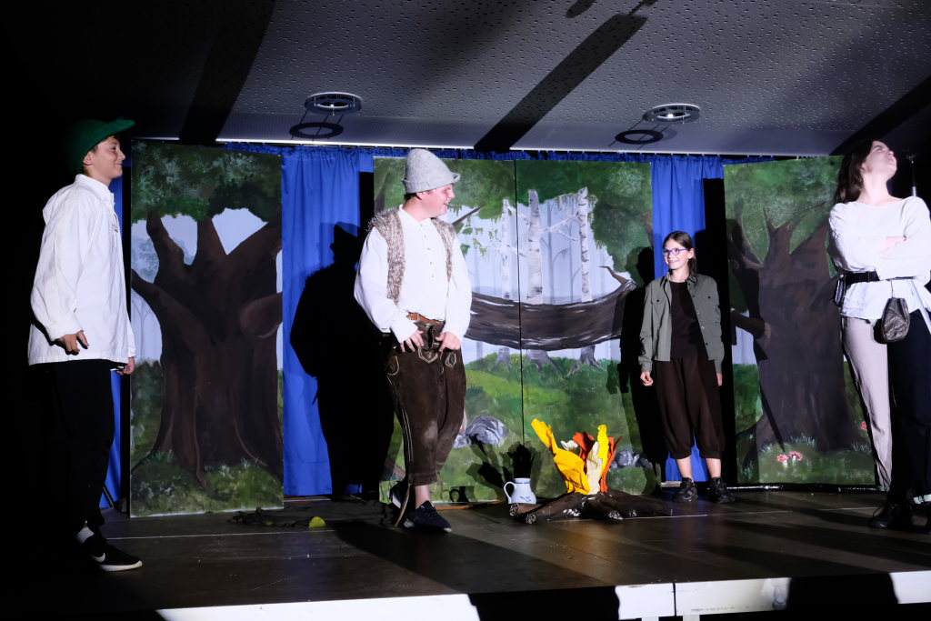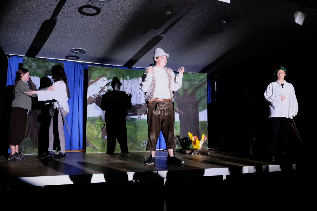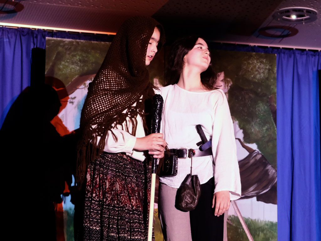 Perfekt in das Ränkespiel integriert ist auch die Tanz-AG. Unter der Leitung von Evelyn Bammert – und der musikalischen Leitung von Leonie Maucher bei ihrem RAP – sorgten Islam und Ariam Alabdalhaji, Ines Chitorian Rodrigues, Valeriia Mykhalchuk, Melissa Stevanovici und Melina Waibel, für einen wunderbaren Farbtupfer im Waldesgrün. Großes Lob auch den Machern der Kostüme um Lena Piesker, die sehr schön die Zeit des „König der Diebe“ widerspiegelten. Und was wäre ein Theater ohne die entsprechende Bühnentechnik: Die beiden ehemaligen Zehntklässler Paul Bliestle und Jonas Schwarz setzten die Akteure ins richtige Licht.