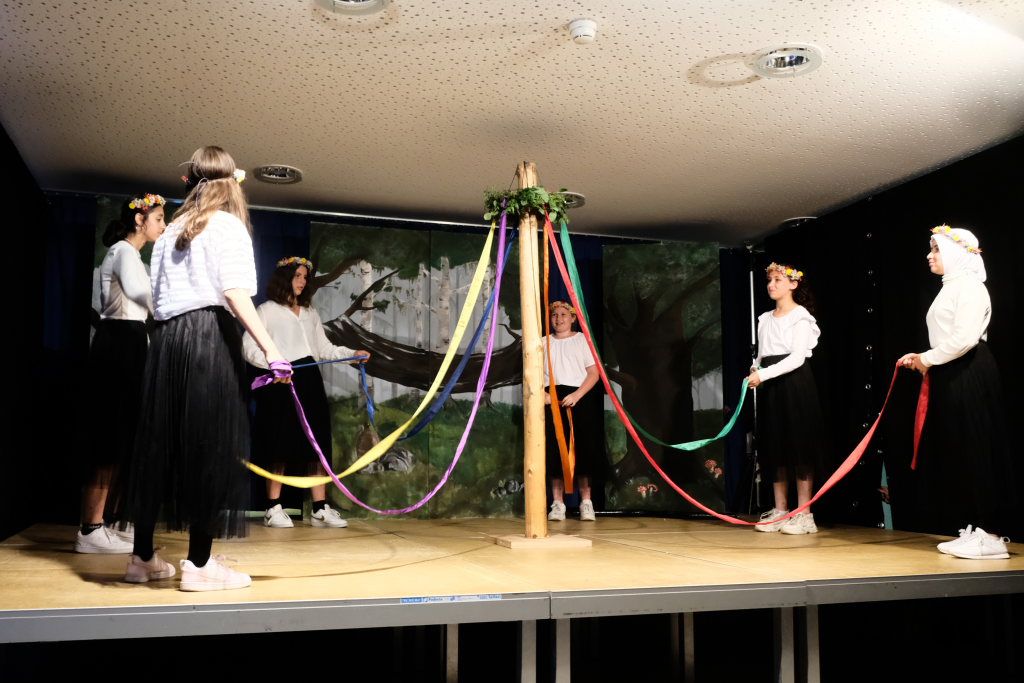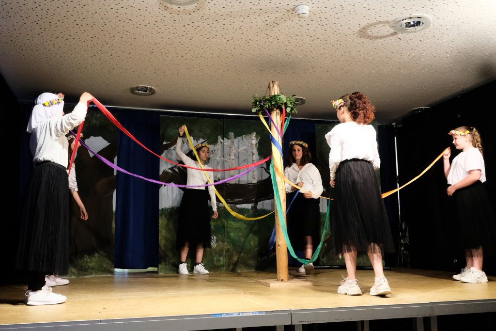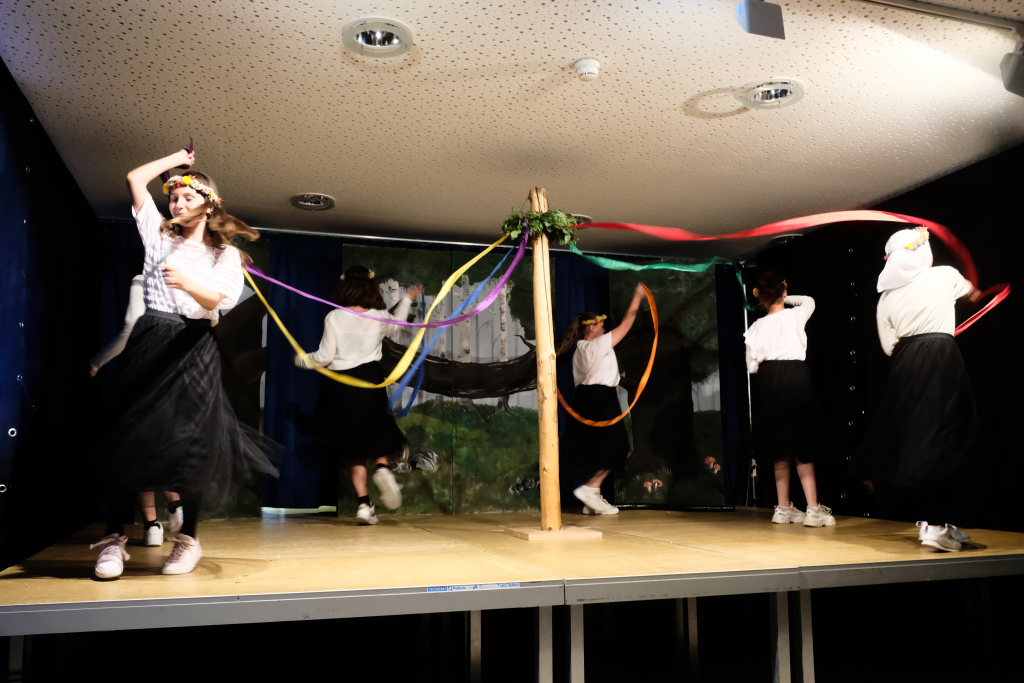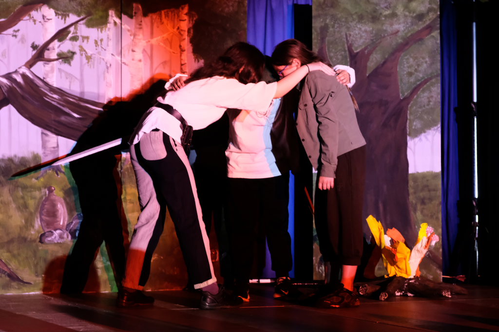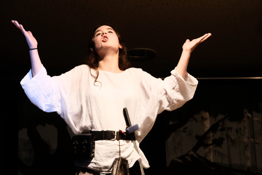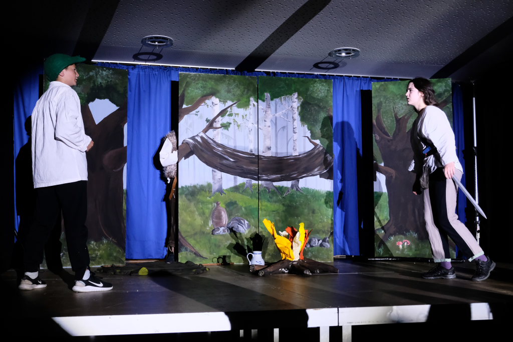 Perfekt in das Ränkespiel integriert ist auch die Tanz-AG. Unter der Leitung von Evelyn Bammert – und der musikalischen Leitung von Leonie Maucher bei ihrem RAP – sorgten Islam und Ariam Alabdalhaji, Ines Chitorian Rodrigues, Valeriia Mykhalchuk, Melissa Stevanovici und Melina Waibel, für einen wunderbaren Farbtupfer im Waldesgrün. Großes Lob auch den Machern der Kostüme um Lena Piesker, die sehr schön die Zeit des „König der Diebe“ widerspiegelten. Und was wäre ein Theater ohne die entsprechende Bühnentechnik: Die beiden ehemaligen Zehntklässler Paul Bliestle und Jonas Schwarz setzten die Akteure ins richtige Licht.