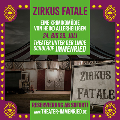 Immenried – Traditionell zu Beginn der Sommerferien öffnet sich in Immenried wieder der Vorhang im „Theater unter der Linde“. In diesem Jahr wird unter der Regie von Theresa Neff die Krimikomödie „Zirkus Fatale“ aufgeführt. Reservierungen für die Aufführungen zwischen dem 24. und 28. Juli sind auf www.theater-immenried.de ab sofort möglich.