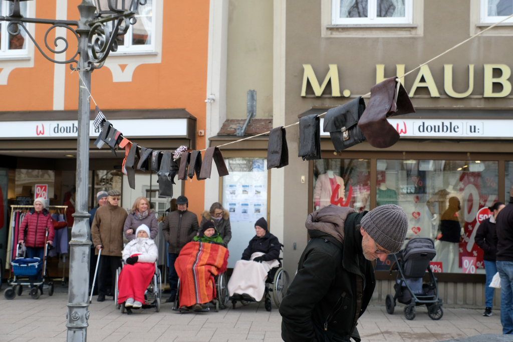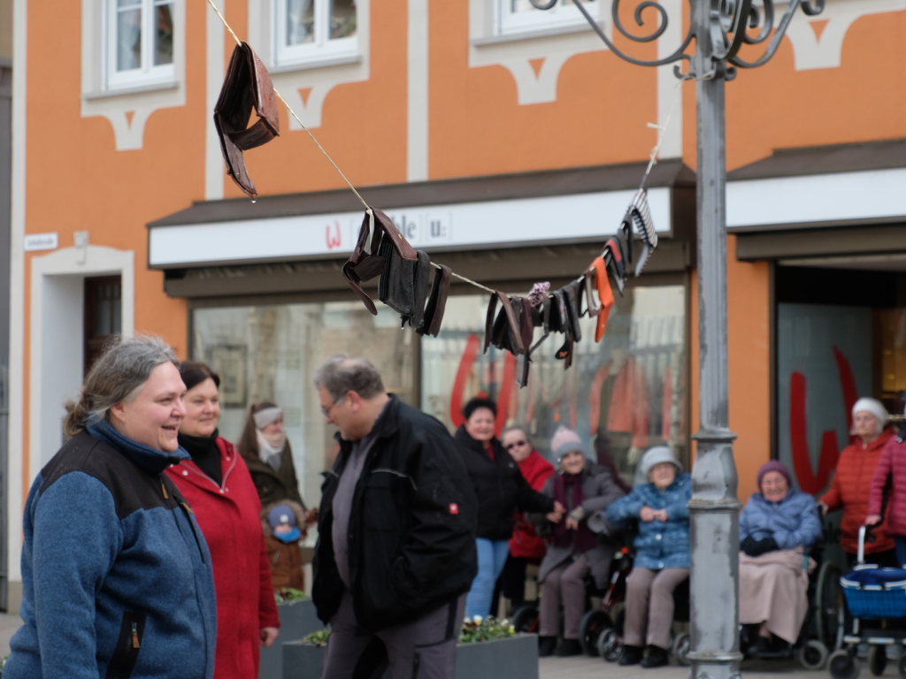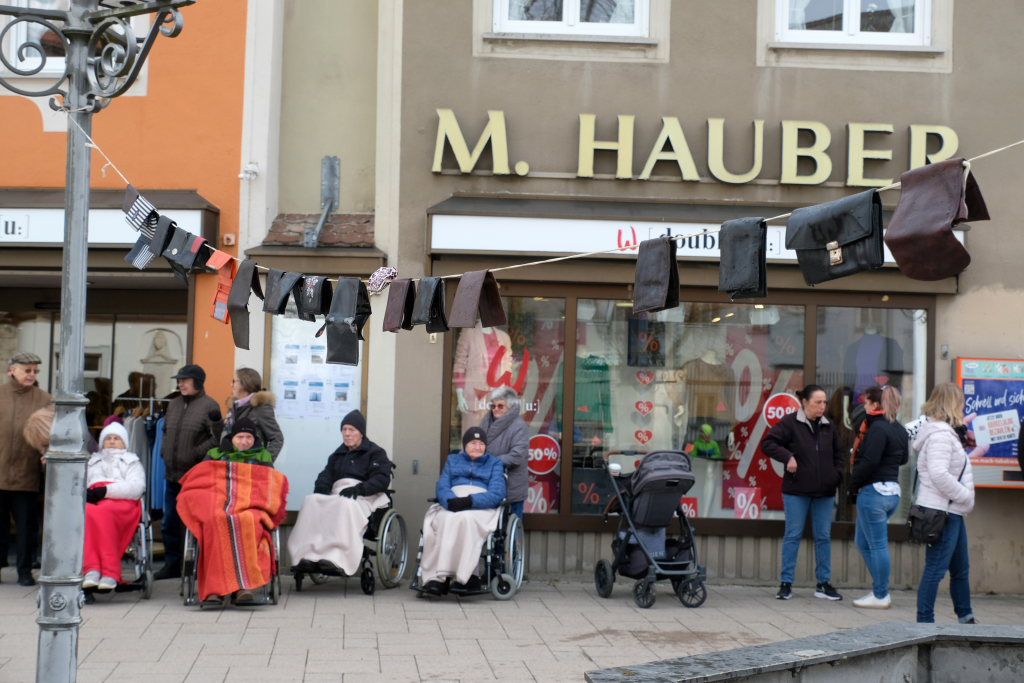 Die Damen und Herren vom Pflegeheim, die bei ihrem Spaziergang vorbeikamen, erfreuten sich als Zuschauer an der Aktion und machten, als sich die Schaffer ans Werk machten, noch ein Gruppenfoto mit der Wäscheleine.