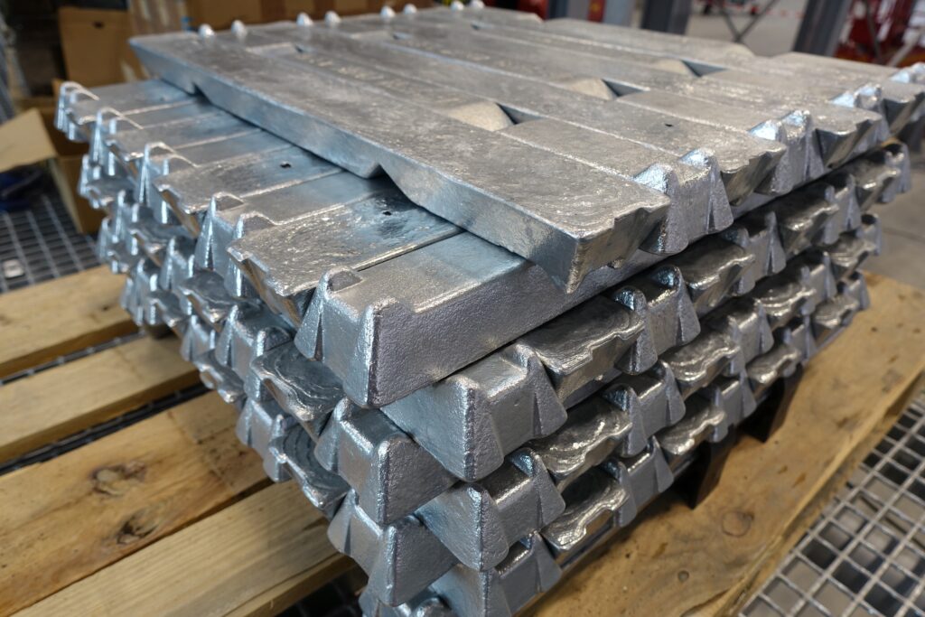 Für die Erstbefüllung des Zinkbades wurden über 200 Tonnen Zink per Hand ins Becken gestapelt. Die einzelnen Barren wiegen jeweils zwischen 25 Kilogramm und 1,5 Tonnen. © Firmengruppe Karger