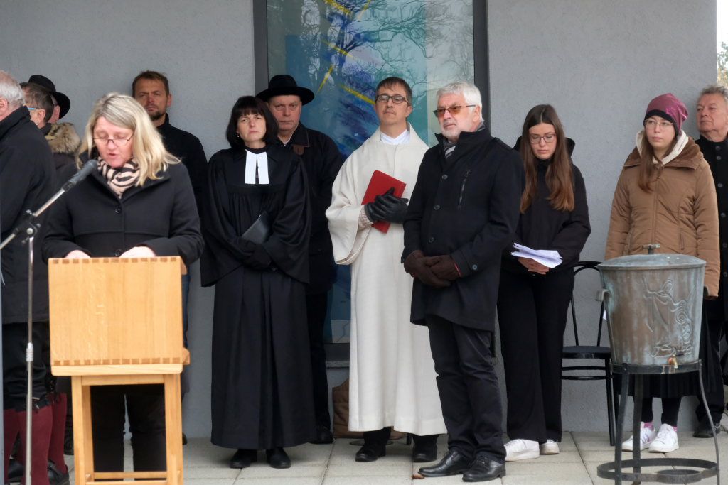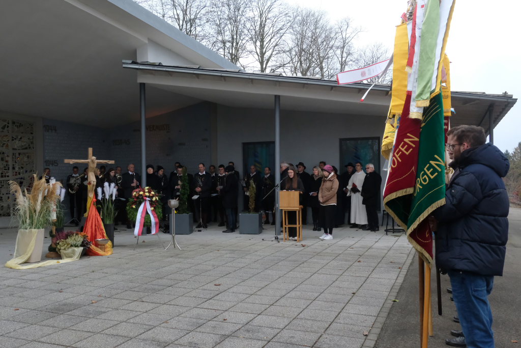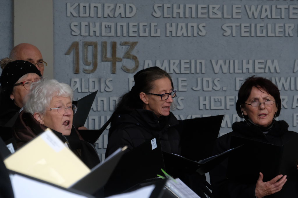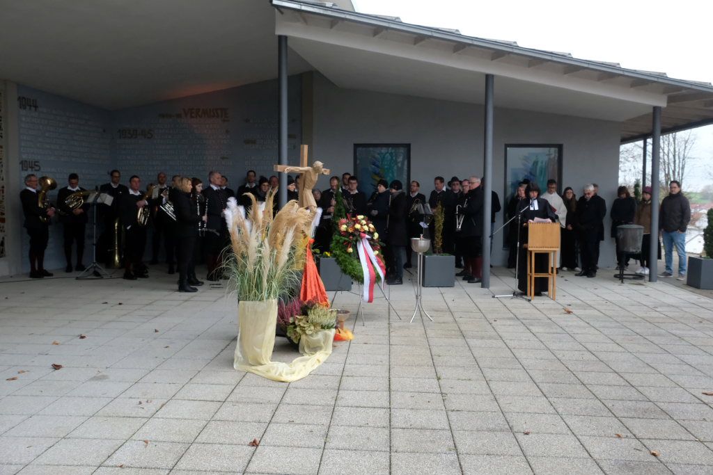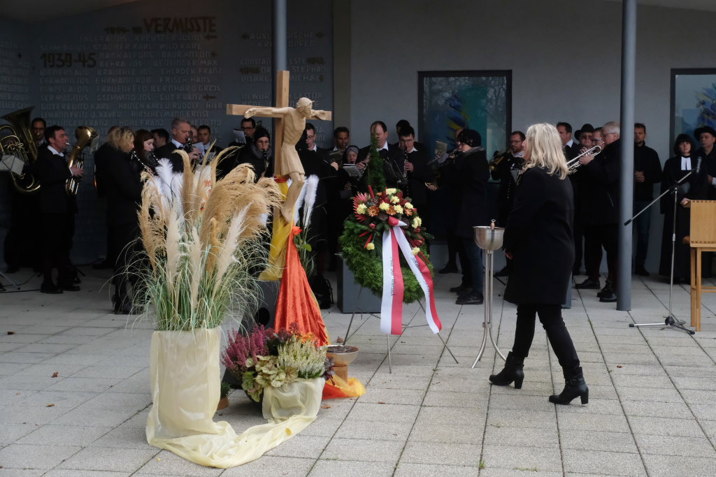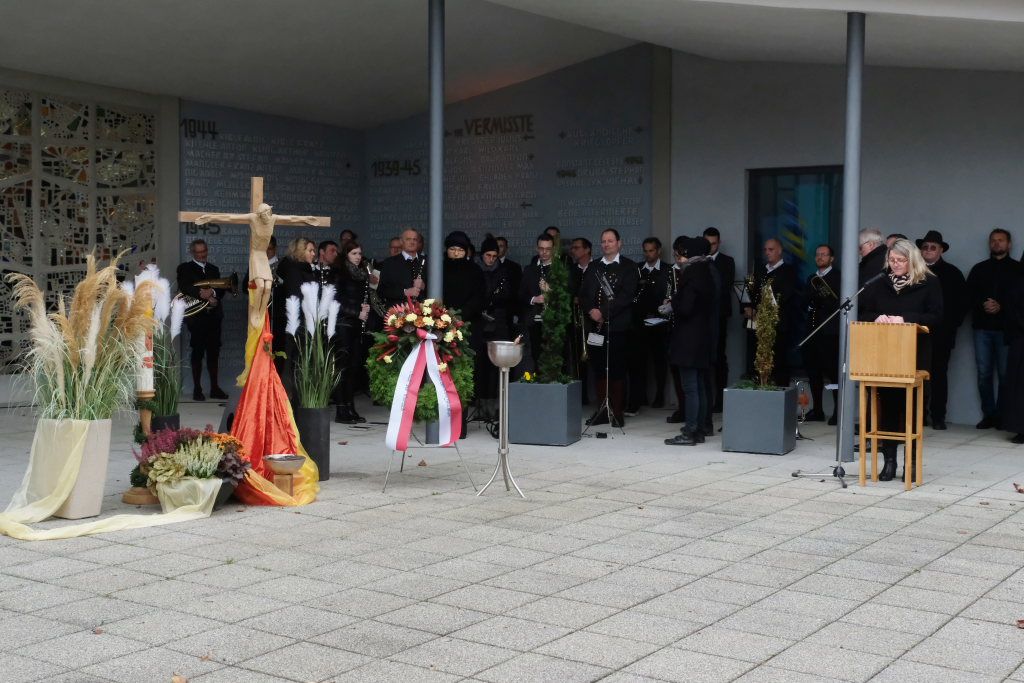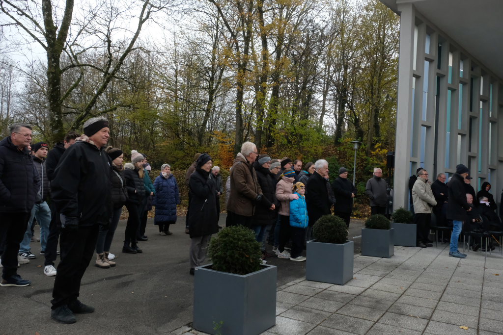 Beim Totengedenken gedachte die Bürgermeisterin allen Opfern von Gewalt und Krieg, den Soldaten, die in Kriegen starben oder danach in Gefangenschaft, als Vertriebene und Flüchtlinge ums Leben kamen. Aber auch derer, die verfolgt und getötet wurden, weil sie einer anderen Rasse oder Minderheit angehörten. Oder deren Leben wegen Krankheit oder Behinderung als „lebensunwert“ bezeichnet wurde. Ebenfalls gedachte die Bürgermeisterin denen die im Widerstand ihr Leben verloren oder weil sie an ihrer Überzeugung festhielten. „Wir trauern mit allen, die Leid tragen um ihre Toten und teilen ihren Schmerz. Aber unser Leben steht im Zeichen der Hoffnung auf Versöhnung unter den Menschen und Völkern.