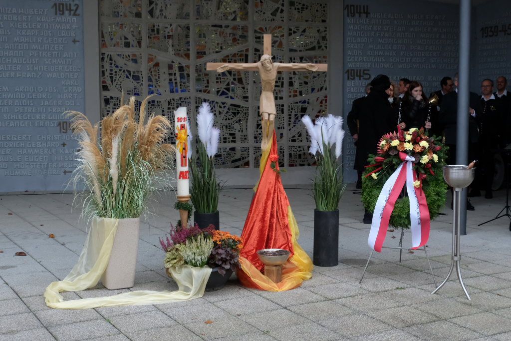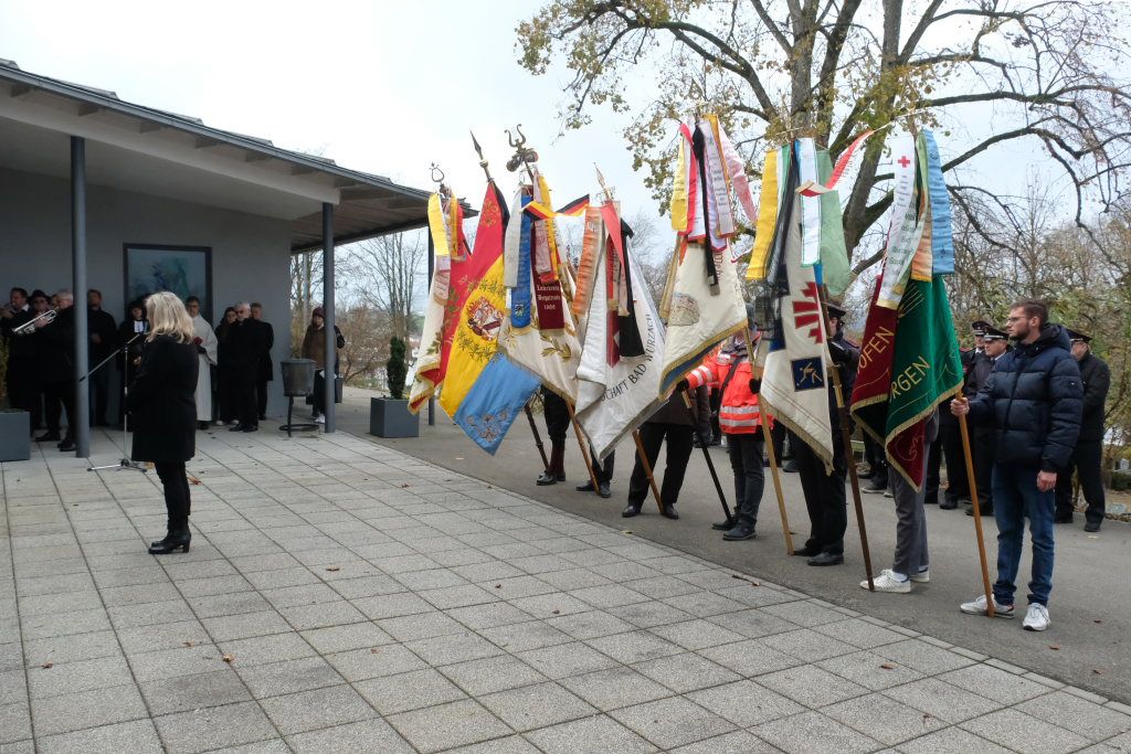 Bad Wurzach – Auf Einladung der Stadtverwaltung und der Kirchen versammelten sich viele Bürger, Abordnungen von Vereinen und Institutionen am Kriegerdenkmal an der Aussegnungshalle, um der Opfer von Kriegen, Terror und Gewalt zu gedenken.