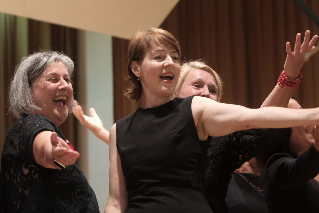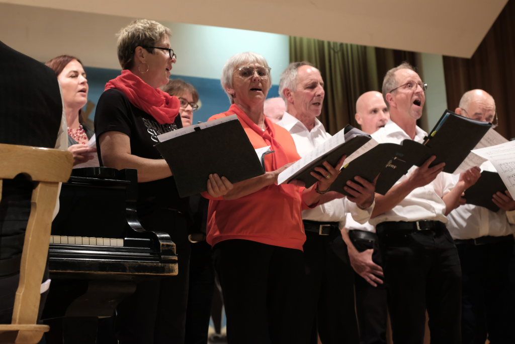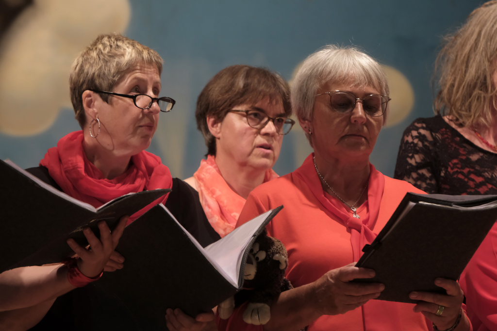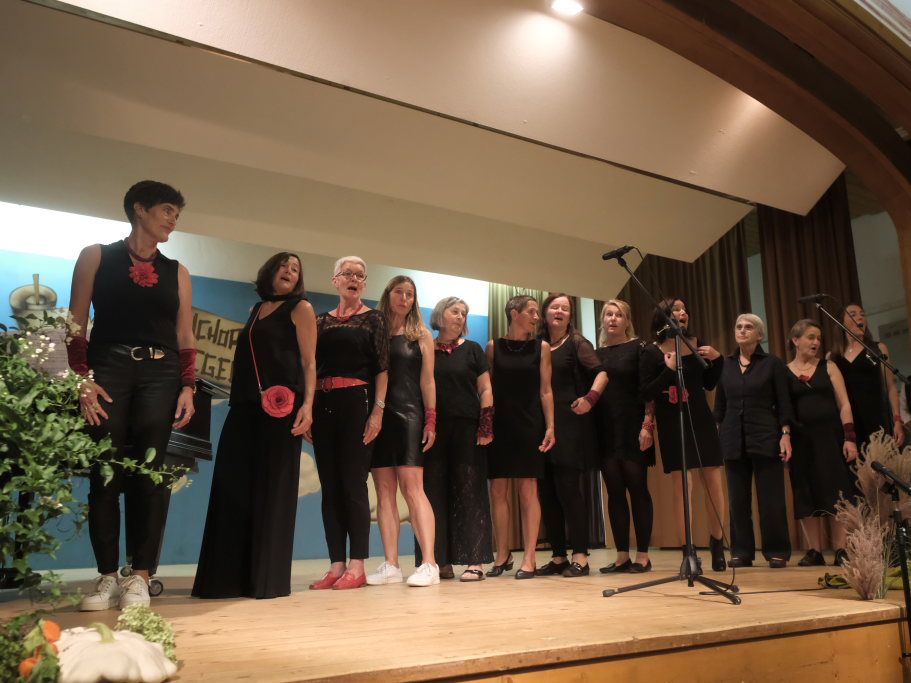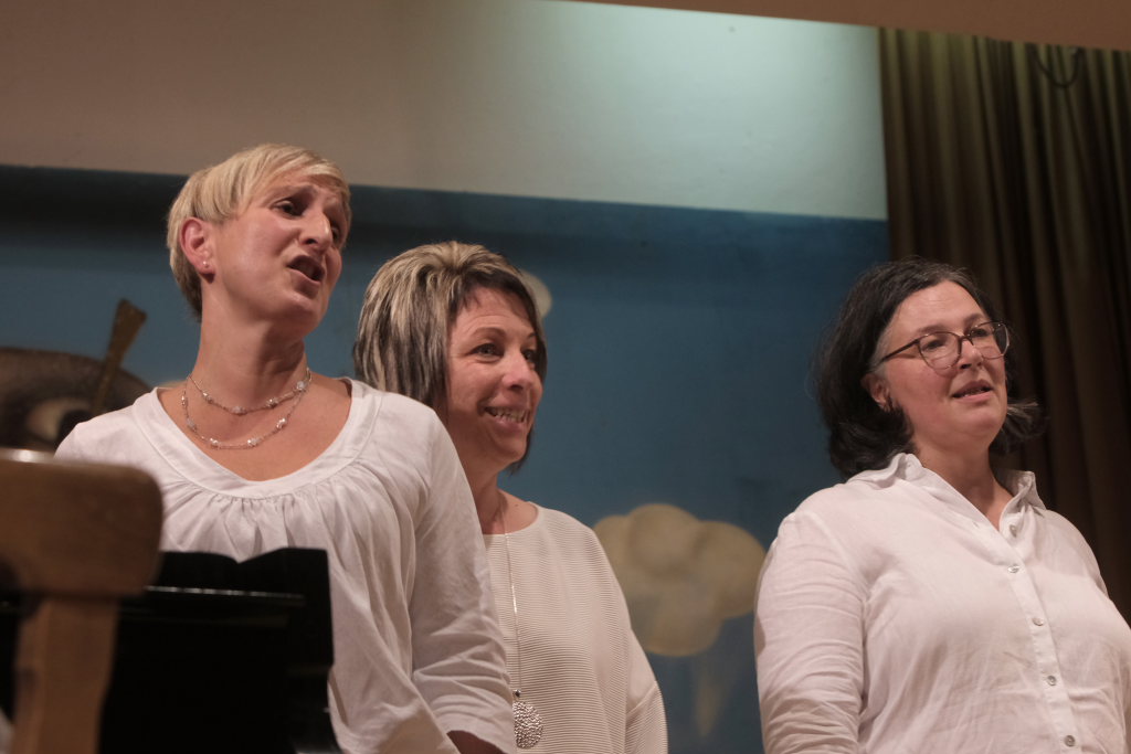 Sie starteten mit dem wunderbaren Spiritual „Bring me little water, Silvy“. Als zweites boten sie dem Publikum mit dem Lied von Annette Humpe und Max Raabe „Für Frauen ist das kein Problem“ eine Hommage an die Stärke der Frau. Einen durchaus ernsten Hintergrund hat das Lied „Bella Ciao“, das sie als Zugabe sangen.