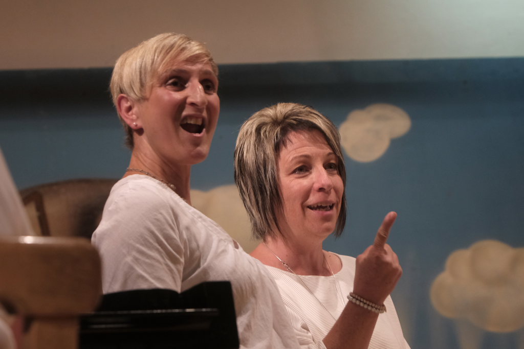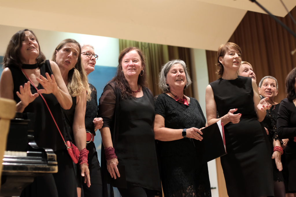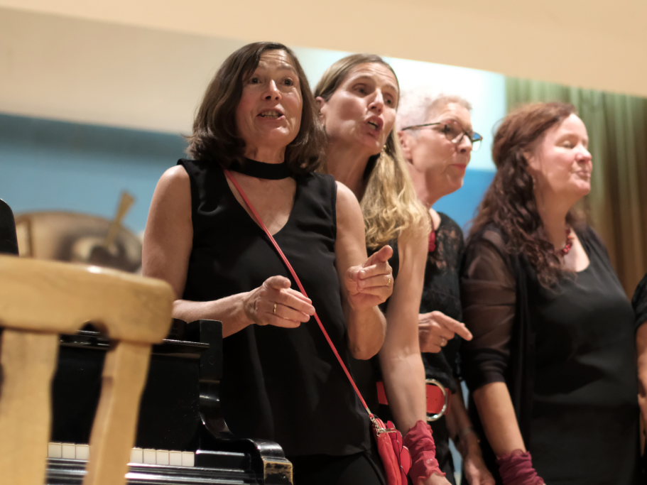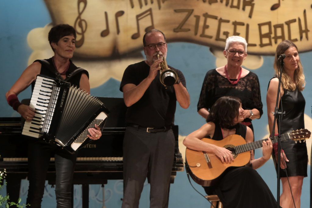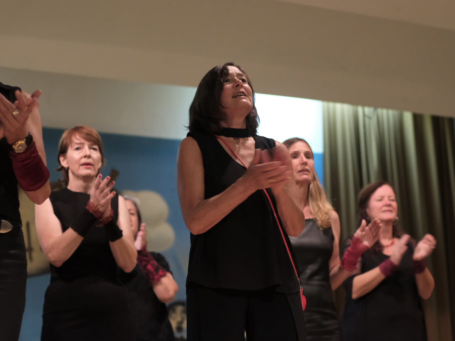 Sie starteten mit dem wunderbaren Spiritual „Bring me little water, Silvy“. Als zweites boten sie dem Publikum mit dem Lied von Annette Humpe und Max Raabe „Für Frauen ist das kein Problem“ eine Hommage an die Stärke der Frau. Einen durchaus ernsten Hintergrund hat das Lied „Bella Ciao“, das sie als Zugabe sangen.