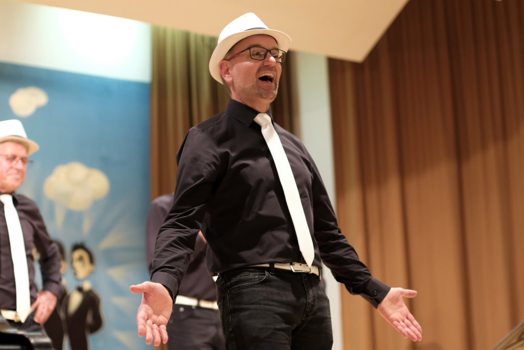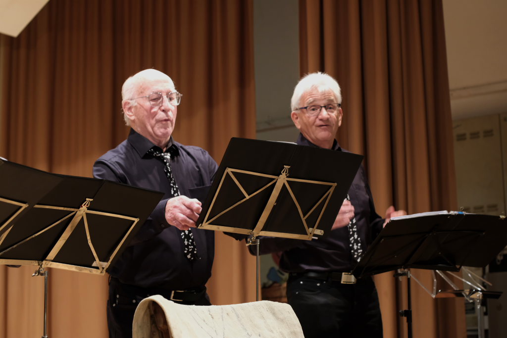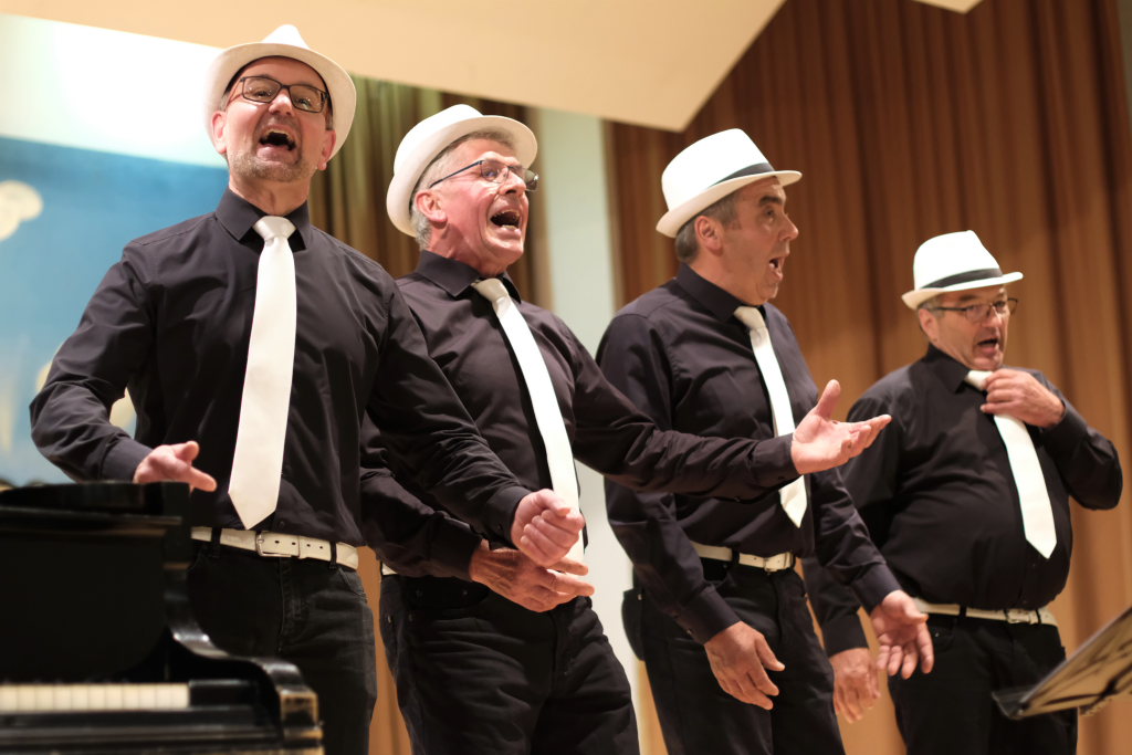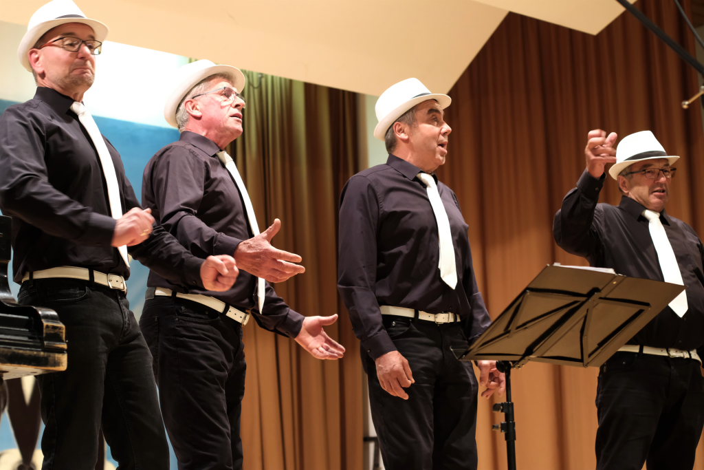Die Schmalegger Hofsänger stellten sich mit dem Stück „Hallo Mitanand“ nochmals persönlich vor. Danach ließen die Sänger den beliebten Schlager „Veronika, der Lenz ist da“ folgen, der erstmals 1930 von den Comedian Harmonists auf die Bühne gebracht worden war.