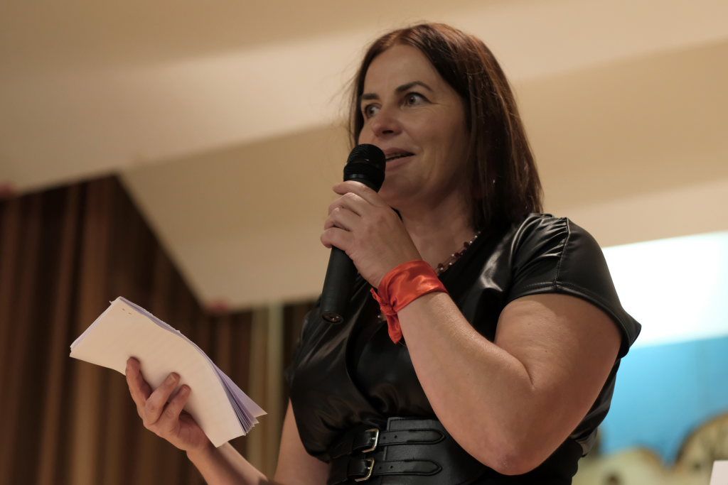 Dann wurde die Bühne zum Ohren- und Augenschmaus, denn die 20 Mädels von Crescentis boten gemeinsam mit ihrem musikalischen Leiter Johannes Tress wirklich beides im Überfluss. Bei „Standby me“ und dem Max Raabe-Titel „Der perfekte Moment“ wussten die selbstbewussten Damen, die zuvor schon fleißig die Stimmung im Saal angekurbelt hatten, voll zu überzeugen.