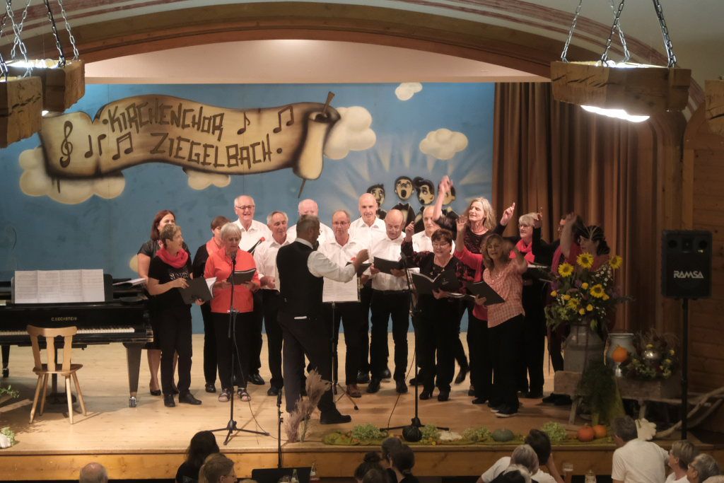 Ziegelbach – Beim diesjährigen A-Capella-Abend sorgten die sechs Gruppen, angefangen vom gastgebenden Kirchenchor Ziegelbach, über den Frauenchor Vocalis, das Männerensemble GIS, dem Frauenchor Crescentis aus Eberharzell, dem Männerquartett der Schmalegger Hofsänger bis zum Frauenchor Intakt aus Bergatreute von der ersten Minute an für Feierlaune im vollbesetzten Dorfstadel.