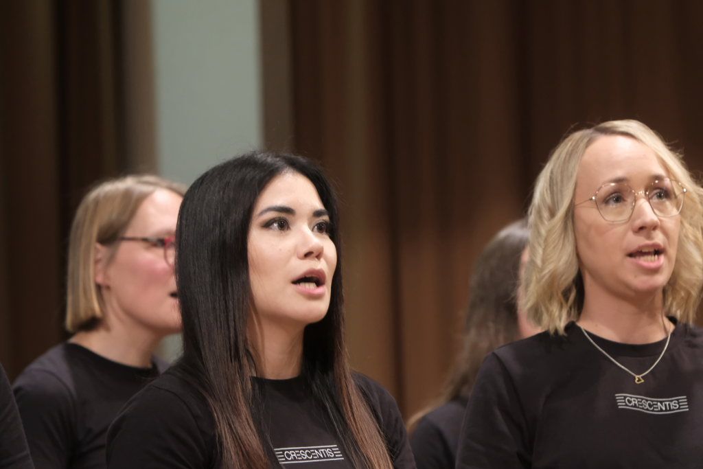 Für den zweiten Teil hatten die Mädels von Crescentis das Lied von Johannes Oerding „Heimat“, arrangiert von Caroline Mast, ausgesucht. Gefolgt von Tornero (1000 Träume), das im Saal für helle Begeisterung sorgte. Bei der vielumjubelten Zugabe „Bed of roses“ von Bon Jovi wurde Johannes Tress als Leadsänger zum Star, der Chor trat gesanglich eher in den Hintergrund.