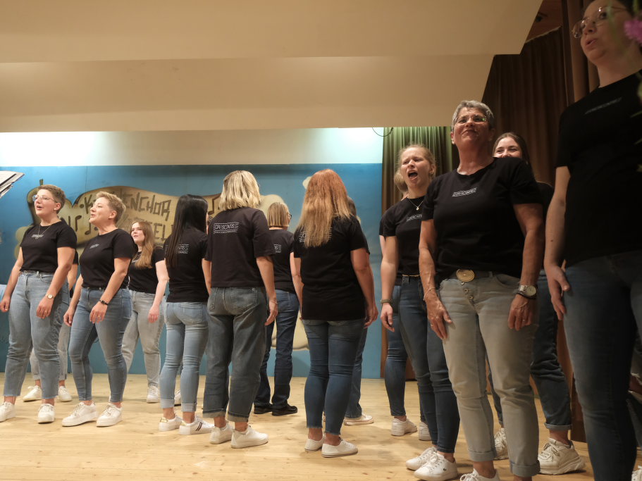 Beim zweiten Teil durfte sich Günter Musch freuen, er stand allein unter „seinen“ Frauen des Kirchenchores beim Lied vom „Mulle“ auf der Bühne. Ihrem Ruf als christlicher Chor gerecht wurden die Sängerinnen dann mit dem mitreißend interpretierten Gospel „Wade in the water“. Kein Wunder, dass sie danach nicht ohne Zugabe von der Bühne durften.