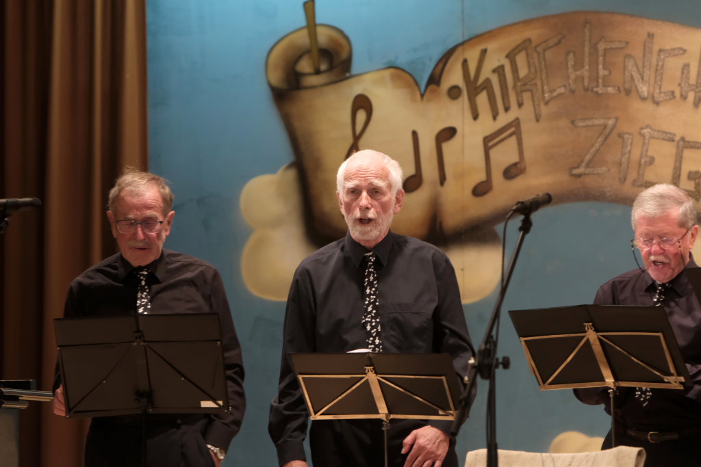 Bereits beim ersten Stück des Kirchenchores unter der Leitung von Günter Musch, dem Seemannslied „The Wellerman“, sprang der Funke aufs Publikum über. Dass Musch und seine Sängerinnen und Sänger den Text „Kirchenchor-like“ angepasst hatten, barg zusätzliches Stimmungspotential. Und auch das zweite Lied des Kirchenchores „Die kleine Kneipe“ forderte geradezu zum Mitsingen auf und war das Lied, das beim traditionellen großen Finale alle Akteure gemeinsam mit dem Publikum sangen. Und es spiegelte laut Tine Wespel, der Vorständin des Kirchenchores, die gemeinsam mit Günter Musch wieder souverän durch das Programm führte, die Situation des Kirchenchores wider, die sie allwöchentlich nach der Probe in der „Rose erleben. „Danke an Gabi und Karl, dass ihr das in unserem kleinen Dorf noch möglich macht.“
