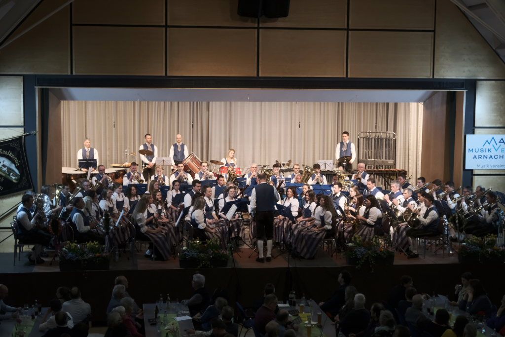 Arnach – Berthold Hiemer, der musikalische Leiter des Musikvereins Arnach, hatte mit seinen 69 (!) Musikern dafür ein abwechslungsreiches Programm zusammengestellt, das er auch selbst mit einleitenden Texten vorstellte.