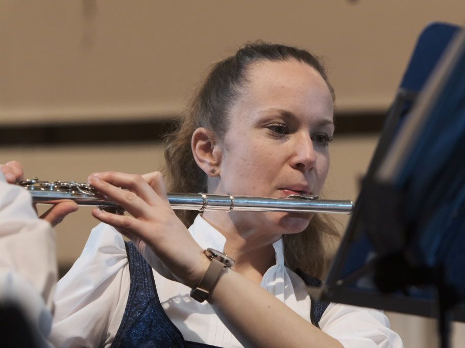 Zuvor dankte Stefanie Jöchle vom Vorstandsteam noch Dirigent Berthold Hiemer für sein großes Engagement in der Vorbereitung des Konzertes.