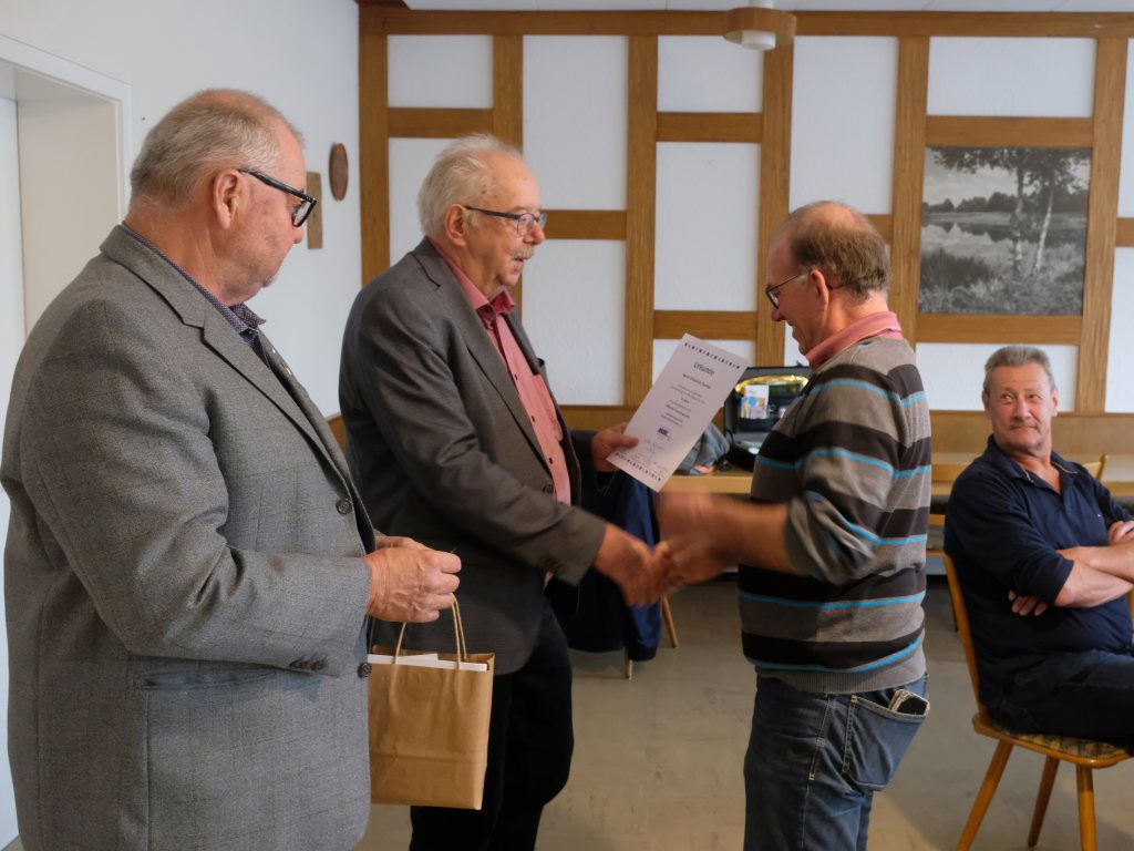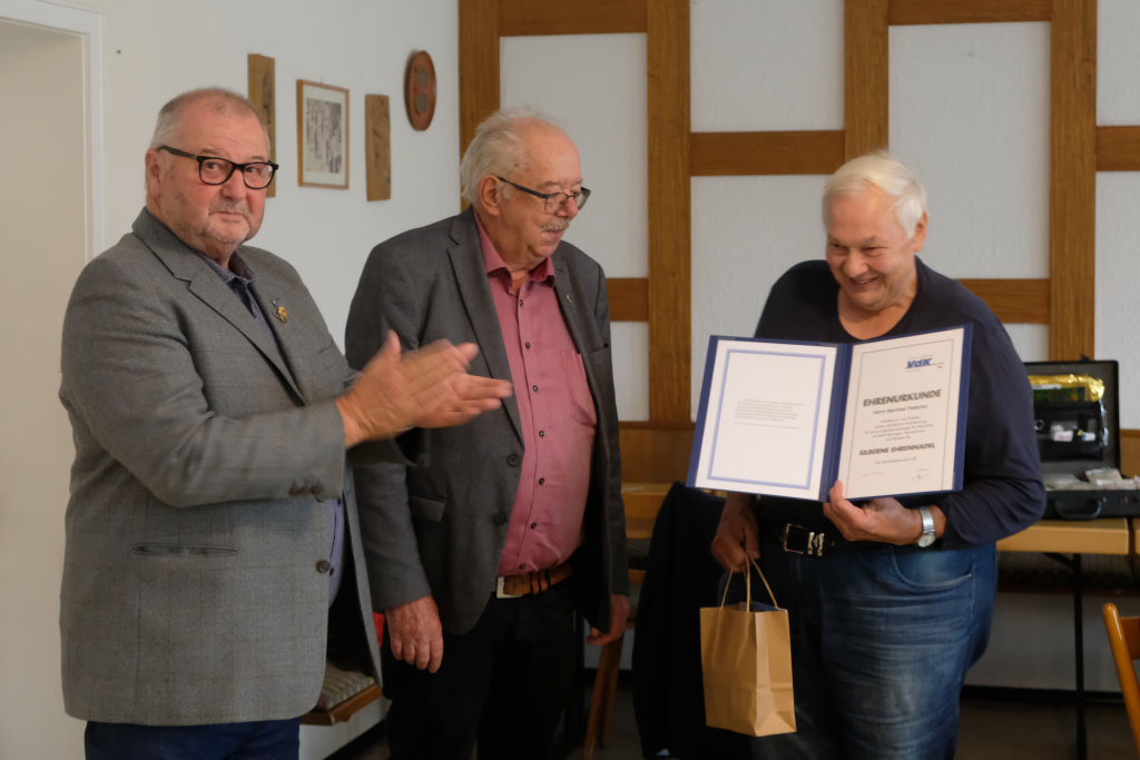 Traditionell beschließen die Ehrungen die Mitgliederversammlung. In diesem Jahr wurden Rainer Mayer, Friedrich Sautter und Wolfgang Uwira mit dem silbernen Treueabzeichen für 10 Jahre Mitgliedschaft ausgezeichnet.