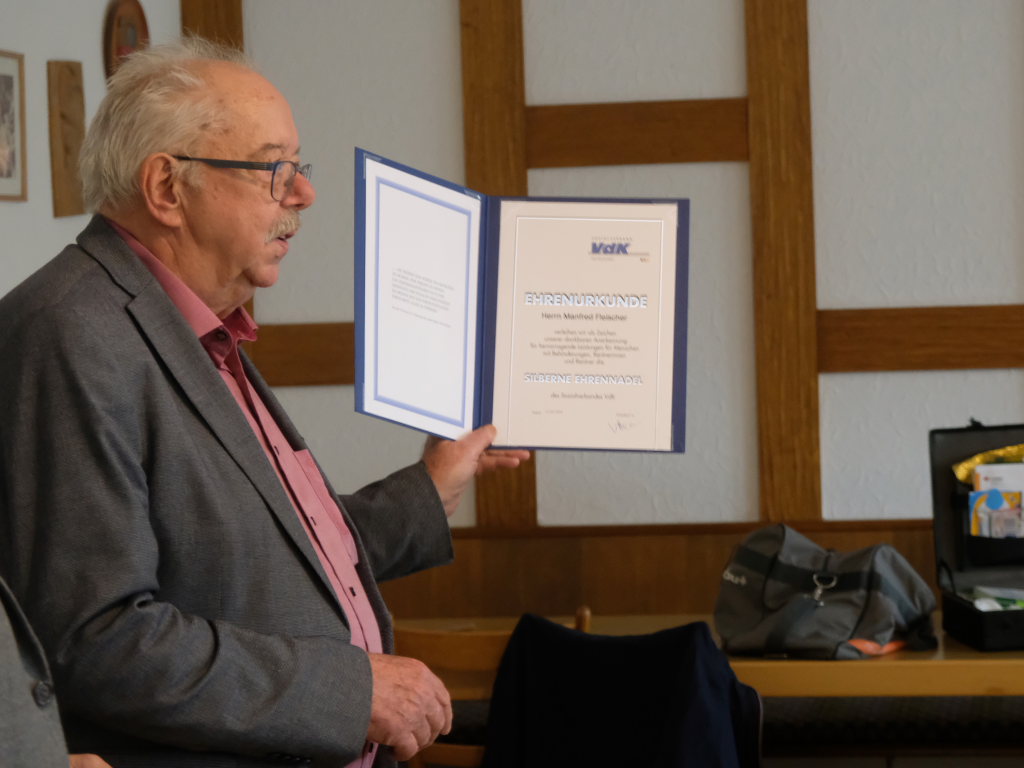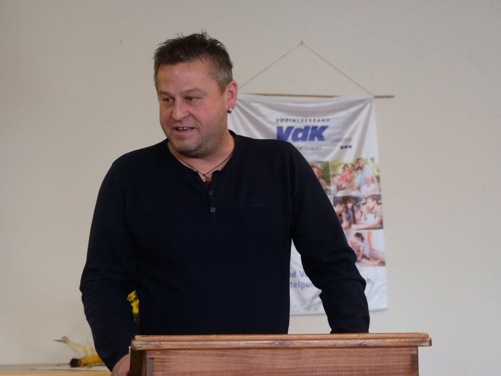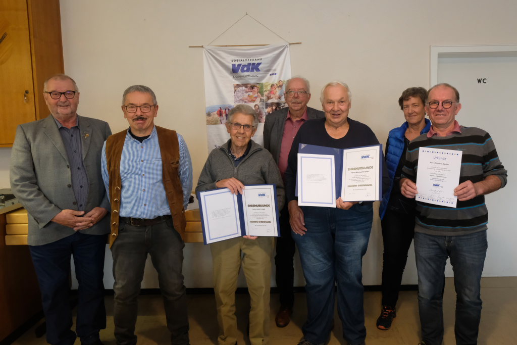 Sehr erfolgreich sei auch die SRG (Sozialrechtschutz gGmbH) des Sozialverbandes VdK gewesen und habe allein im vergangenen Jahr 17 Millionen Euro alleine für seine Mitglieder in Baden Württemberg erkämpft. Der Große Zuspruch zeige die wichtige Rolle des VdK als mahnende Stimme für die Belange von Behinderten, Chronisch-Kranken, Pflegebedürftigen und deren Angehörigen. Aber auch den vorbehaltlosen Einsatz der ehrenamtlich Tätigen in den Ortsverbänden. Der VdK sei seit 75 Jahren Mahner für Soziale Gerechtigkeit und die große Zahl der Verfahren zeige, dass der Sozialrechtsschutz eine tragende Säule der Verbandsarbeit sei. Beim Bezirksverbandstag sei er wieder zum stellvertretenden Bezirksvorsitzenden gewählt worden und damit auch in den Landesvorstand. Der Landesverband habe auf seiner Sitzung beschlossen, die Beiträge zu erhöhen. Eine weitere Neuerung wurde dort ebenfalls bekannt geben, die den Ehrenamtlichen die Teilnahme an Fortbildungen und Seminaren erleichtern wird: Sie können zukünftig dafür (bezahlten) Bildungsurlaub beantragen. „Für all die zukünftigen Aufgaben ist der VdK auf Sie alle angewiesen. Denn nur als Solidargemeinschaft, die der VdK seit über 75 Jahren darstellt, wird er erfolgreich bleiben, ganz nach dem Motto „Solidarität ist unverhandelbar“.