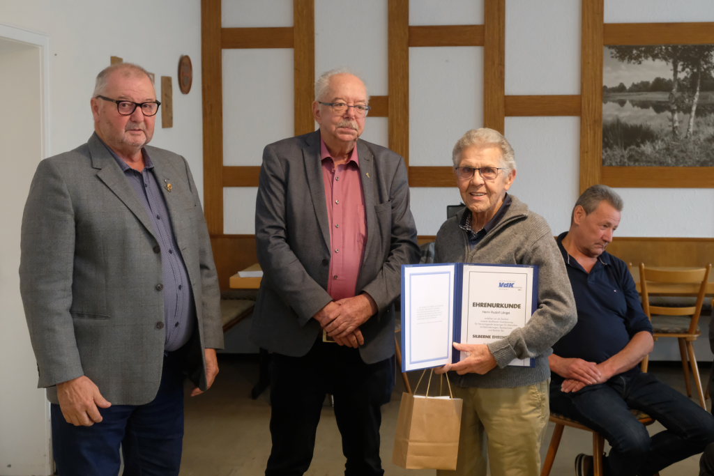 Die beiden Beisitzer Manfred Fleischer und Rudolf Längst wurden für 15 Jahre im Ehrenamt mit der silbernen Ehrennadel ausgezeichnet.