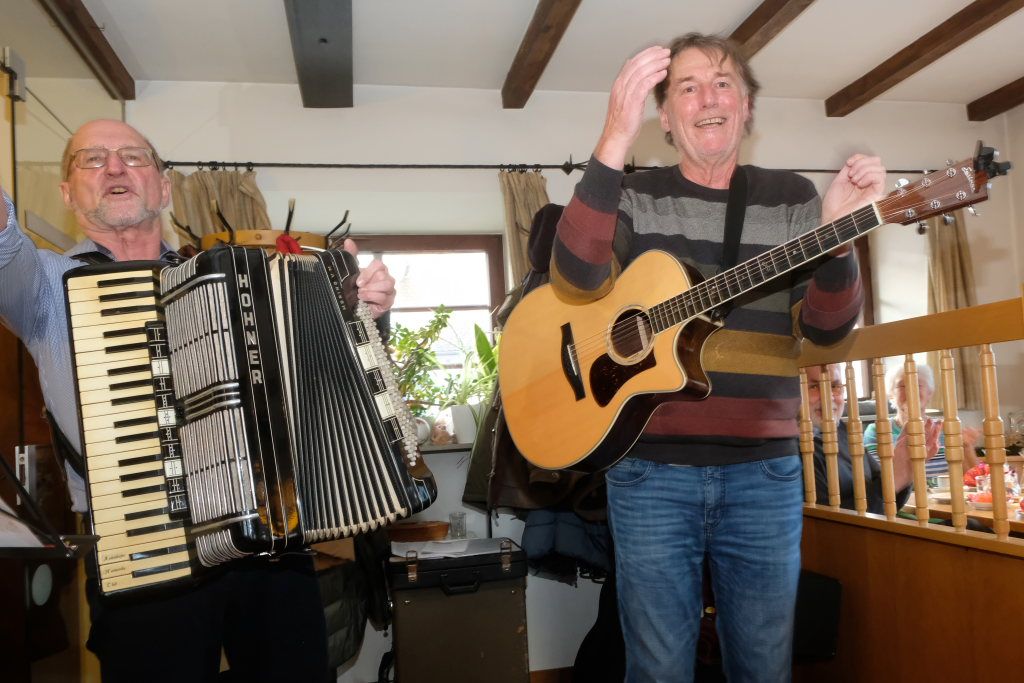 Das festliche Liedgut fand sich gesammelt in einem kleinen Liedheftchen, das einstmals vom CDU-Bezirksverband Württemberg-Hohenzollern nach einer Idee des Ortsverbandes Weingarten herausgegeben worden war. Darin enthalten sind alle Weihnachtsklassiker wie „O du fröhliche“, „Stille Nacht“, „Ihr Kinderlein kommet“, aber auch Adventslieder wie „Wachet auf ruft uns die Stimme“ oder „Es ist ein Ros entsprungen“. Für die Senioren aber war das Heft beinahe überflüssig, konnten sie doch bei den meisten gesungenen Liedern den Text auswendig. Darüber hinaus nahmen die beiden Musiker die Besucher auch mit auf eine kleine musikalische Reise: Neben den Jingle Bells aus Amerika sangen die Senioren auch beim österreichischen „Es wird scho glei dumpa“ mit.