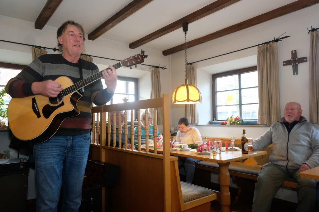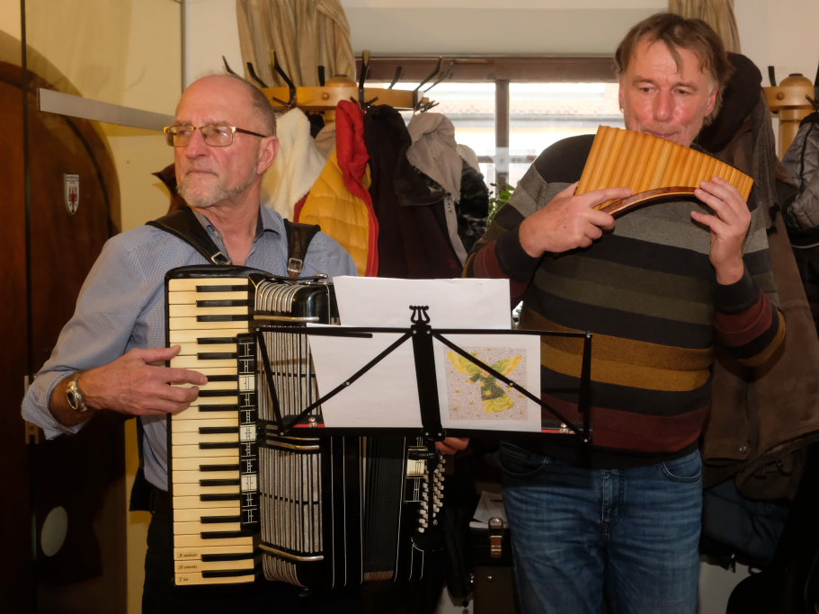 Bei Kaffee, Punsch und Glühwein freuten sich die Senioren an der musikalischen Unterhaltung mit Advents- und Weihnachtsliedern durch Edmund Butscher (Gitarre und Panflöte), der mit seinem Partner Georg Sommer am Akkordeon die Gäste zum fleißigen Mitsingen animierte.
