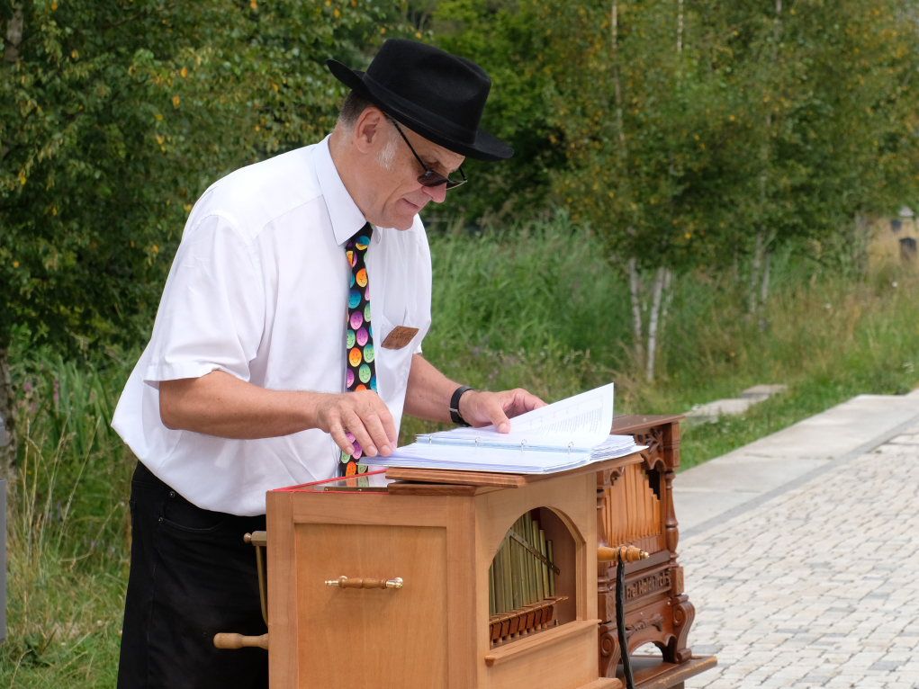 Zwei dieser Instrumente hatte der in der Schweiz lebende Roberto mit zum Klosterplatz gebracht. Und nicht nur die Instrumente, sondern eine fast wissenschaftliche Abhandlung darüber, wie diese funktionieren. Und er brachte Passanten etwa mit dem Charleston „Black Buttom“ von 1926 tatsächlich ein wenig zum Tanzen. Und er ließ auch den Chronisten Hand an die Kurbeln seiner beiden Instrumente legen, wobei dieser dann feststellen musste, dass es durchaus einer gewissen Kondition bedarf, um die einzelnen Stücke mit dem richtigen Tempo abzuspielen …