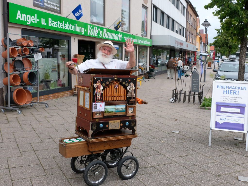 Bad Wurzach – Am Donnerstag, 8. August, gab es eine Vielfalt an Musik in Bad Wurzach. Denn zwischen 9.30 Uhr und 13.00 Uhr erklangen an verschiedenen Standorten vom Baumarkt Volk bis zum Klosterplatz in der Innenstadt musikalische Häppchen von Drehorgelspielern aus ganz Oberschwaben und der Schweiz.