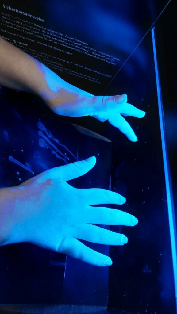 beim Blutdruck entstehen und wie man ihn misst. Auch das Messen des Glucosewertes im Blut wurde demonstriert und dabei darauf hingewiesen, wie wichtig das Einhalten von Hygienestandards ist. Ganz mutige Schüler durften unter fachkundiger Anleitung sogar selber Hand anlegen und bei einer Pflegeschülerin eine kleine Menge Blut abnehmen und mit dem Gerät messen. Der ein oder andere Schüler überwand seine Berührungsängste. Hier konnten die Fachleute auch beruhigen: „Andere Menschen anzufassen wird im Laufe der Zeit zur Gewohnheit.“