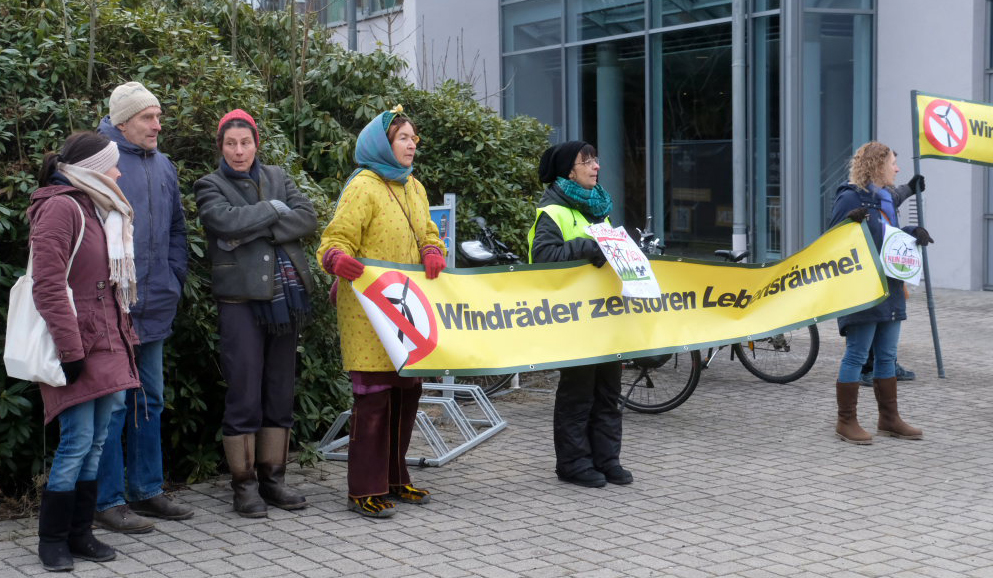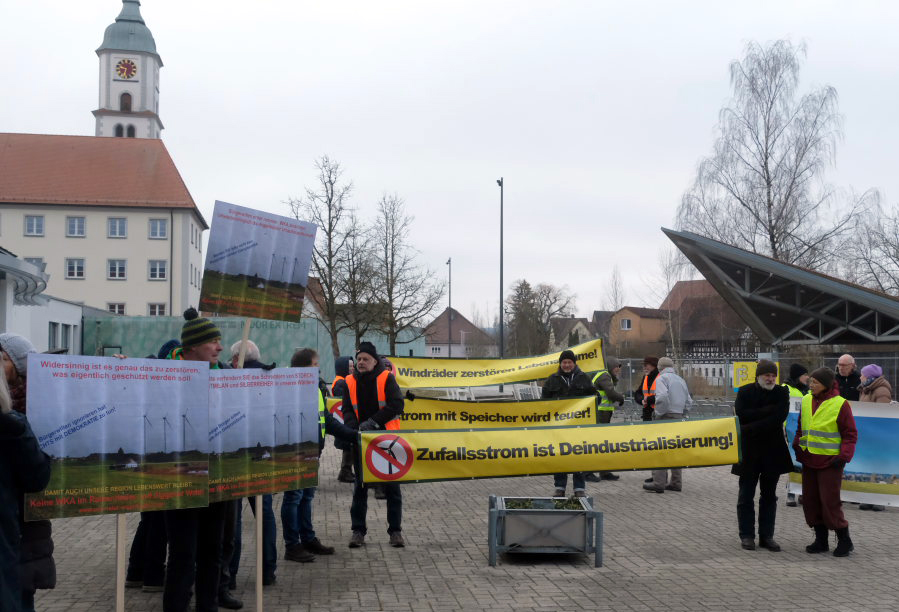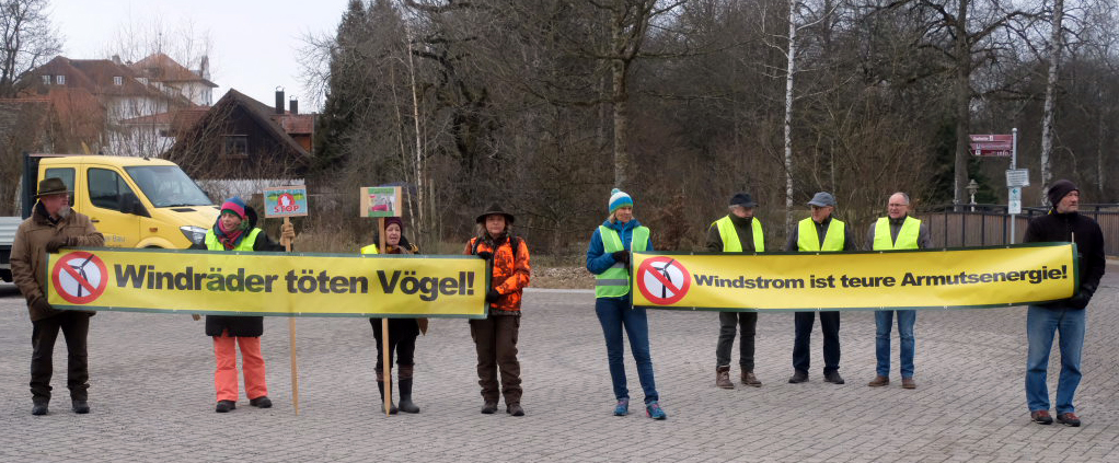 Bad Wurzach – Die Mitglieder der Verbandsversammlung des Regionalverbandes Bodensee-Oberschwaben erhielten vor ihrer Sitzung am 7. Februar im Saal der Kurhaus-Kulturschmiede in Bad Wurzach von gut 100 Windkraftgegnern aus dem gesamten Verbandsgebiet einen lautstarken Empfang bereitet. Mit Sprechchören und mit zahlreichen Transparenten wiesen die Demonstranten die Verbandsvertreter auf ihre von 11 Bürgerinitiativen im Verbandsgebiet getragenen Anliegen hin, auf Windkraft zu verzichten.