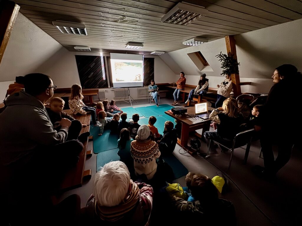 Als erstes kamen die Kleinsten auf Ihre Kosten. Im Haus der Vereine, direkt neben dem Weihnachtsmärktle, wurde ab 17.00 ein Bilderbuchkino angeboten. Das Seibranzer Büchereiteam las für die Kinder zwei Geschichten vor. Unterstützt wurden die Geschichten von Bildern, welche auf eine Leinwand projiziert wurden.