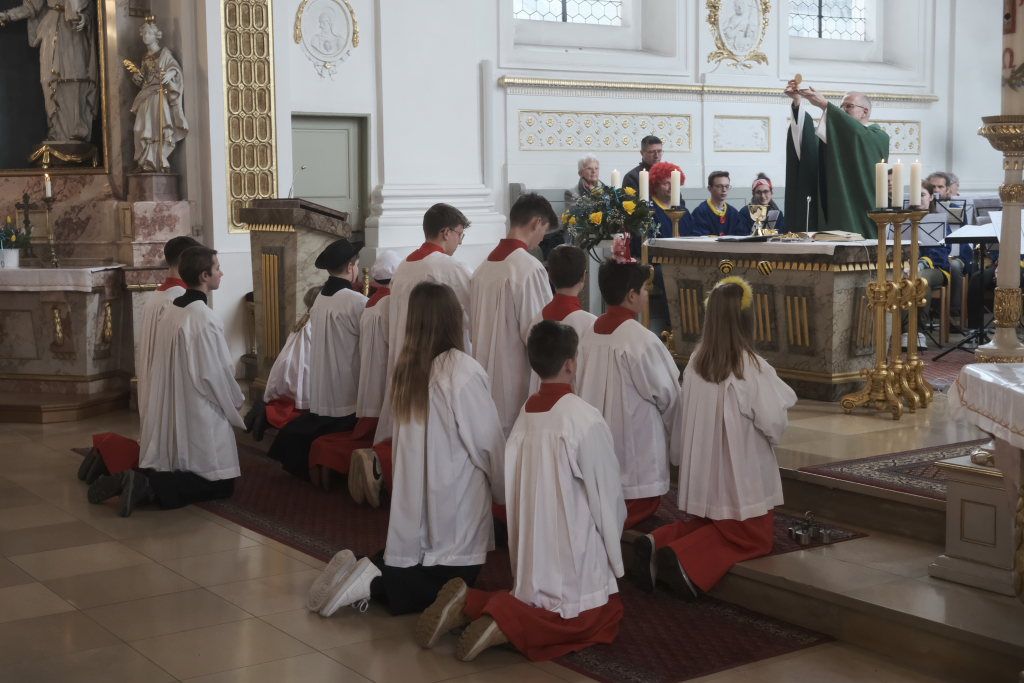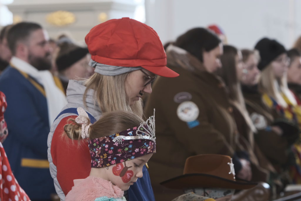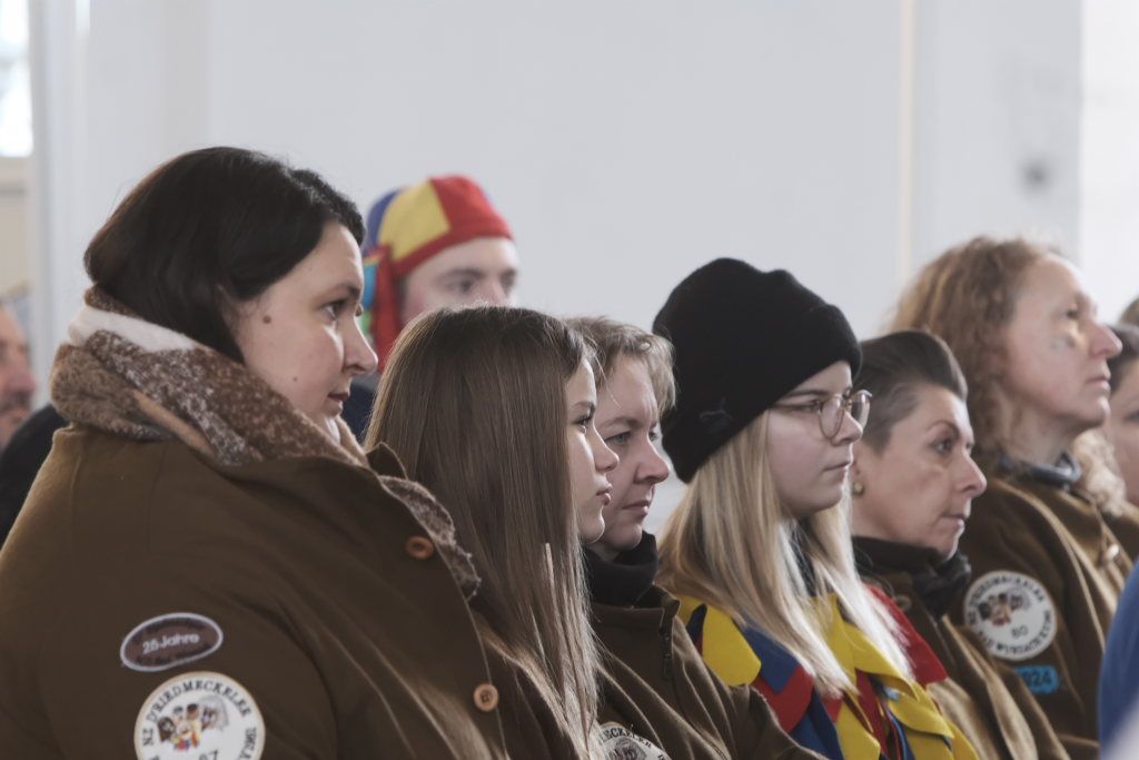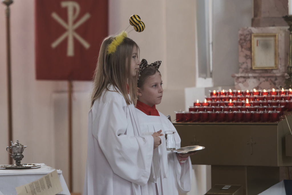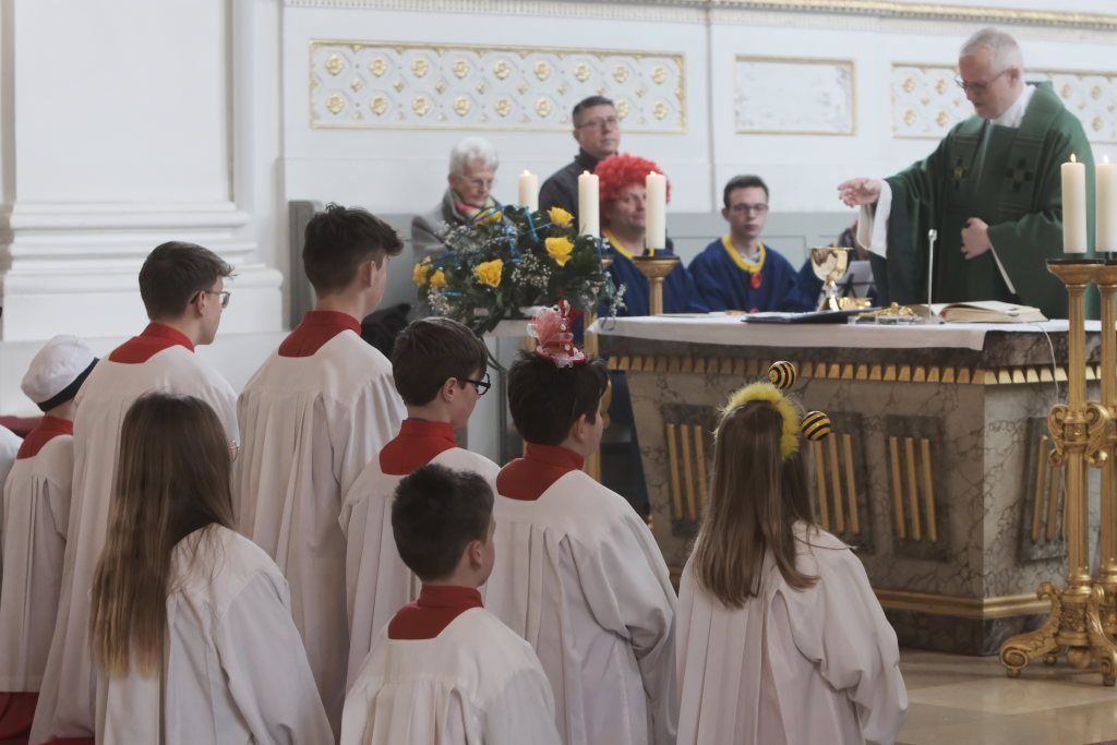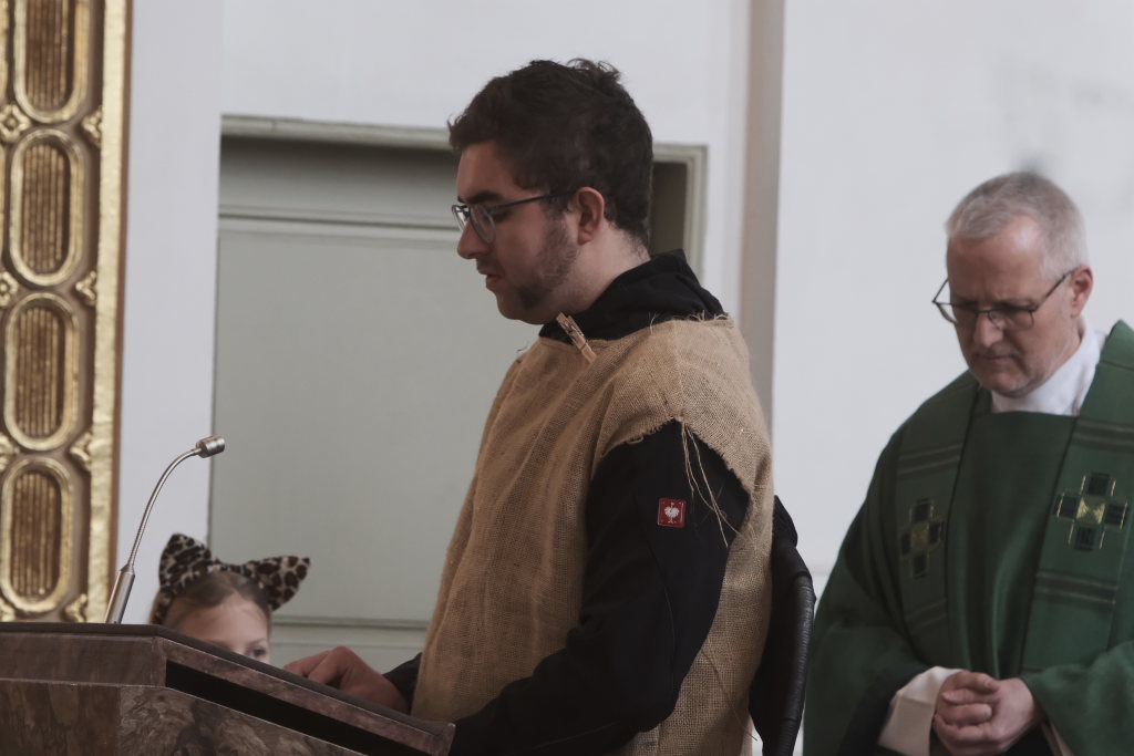 Zunftmeister Dominic Neher hielt als Lektor die Lesung aus dem Buch Levitikus. Nach dem Matthäus-Evangelium, in dem Jesus einen Aussätzigen heilt, sowie der Predigt verlasen je zwei Vertreter der Narrenzunft und der Freunde des Ungeziefers die Fürbitten. Darin beteten sie für alle Schwerkranken und Behinderten, die von der Gesellschaft ausgegrenzt werden, für alle die sich im Ukraine- und Israelkonflikt um Frieden bemühen und alle, die sich für ihre Mitmenschen einsetzen.
