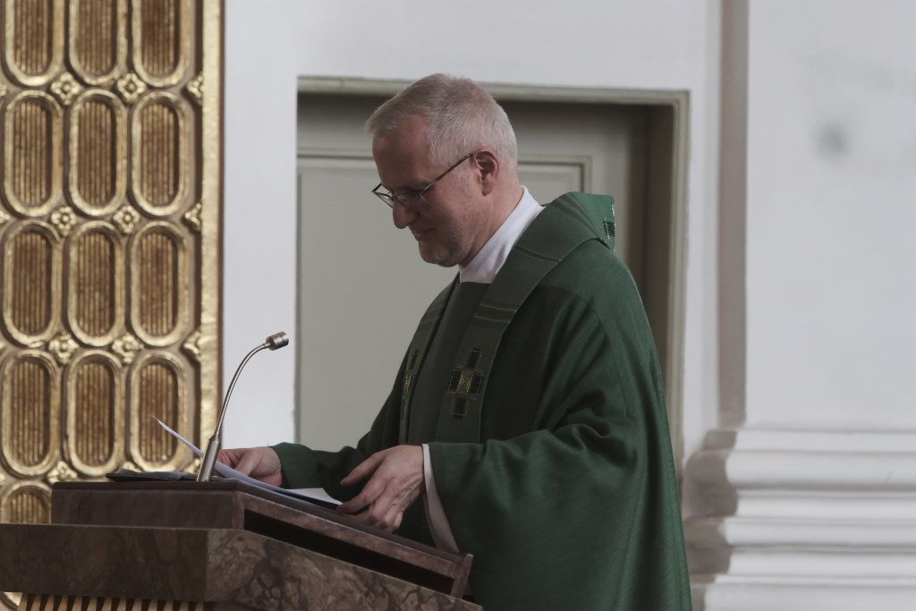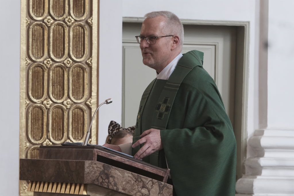 In seiner in Reimform gehaltenen Predigt ging Pfarrer Maier auf das Tages-Evangelium ein, in dem Jesus einen Aussätzigen heilt. Neben der Last der Krankheit wird der Kranke zusätzlich von der Gesellschaft ausgegrenzt. „Schreiende Angst vor solchen Kranken, Angst in den eigenen Gedanken, dass man sich infizieren möge, und selber so zu Tode käme.“ Es ist erst 200 Jahre her, dass Kranke aus der Stadt auf den Leprosenberg verbannt und ihnen die Gemeinschaft verwehrt worden sei. „Nimm eine Klapper in die Hand, trag am Leib ein Siechengewand, auf dass ein jeder Abstand halte! Zu uns gehörst Du nun nicht mehr.“ Und bevor er ausgeschlossen wurde, da wurde noch – als ob er schon gestorben wäre – ein Art Requiem gehalten. Dies alles müsse man sehen, um zu verstehen, was der Aussätzige aus dem Evangelium durchgemacht habe, der quasi sich aus dem Grabe erhoben hatte und neugeboren wurde. Hier werde der wahre Gewinn der Menschheit angedeutet: Dass durch Jesu Sterben und Auferstehen „sich ewiges Leben in uns senkt.“ Im Evangelium sei das so zusammengefasst: „Unsere Leiden, Nöte und Plagen, unsere Krankheiten hat ER getragen.“ Pfarrer Maier warb darum, auf die Botschaft zu achten: „Es braucht gutes Zuhören und viel Zeit, dann ist man am Ende freilich bereit, den Sinn der Wunder zu verstehen: Dahinter das Reich Gottes sehn.“