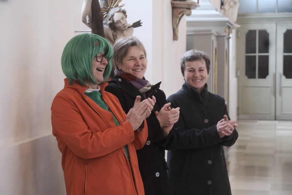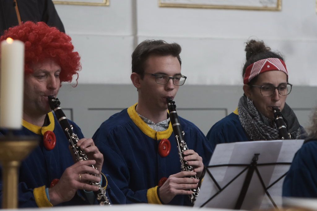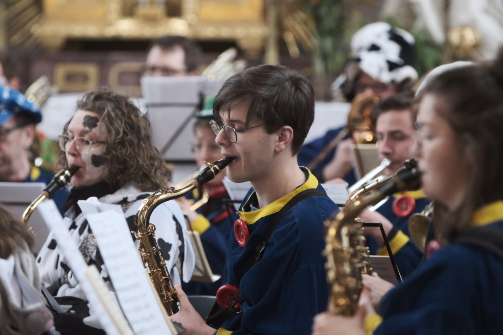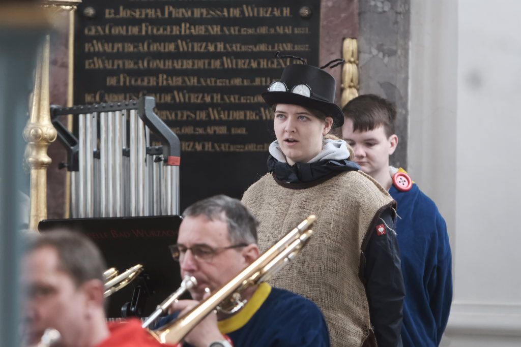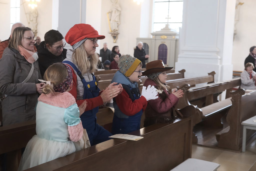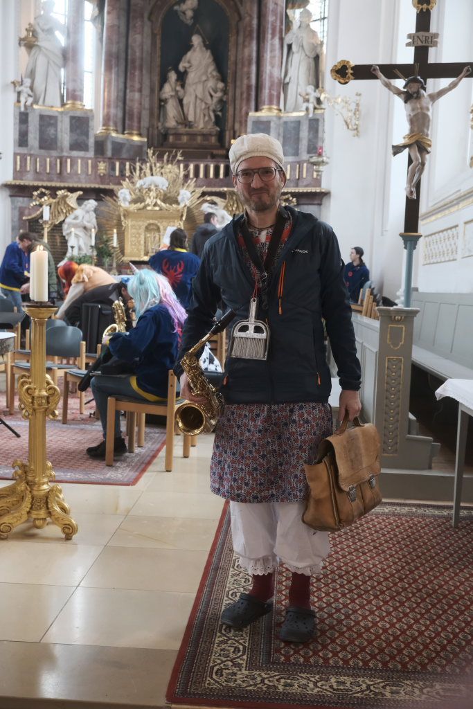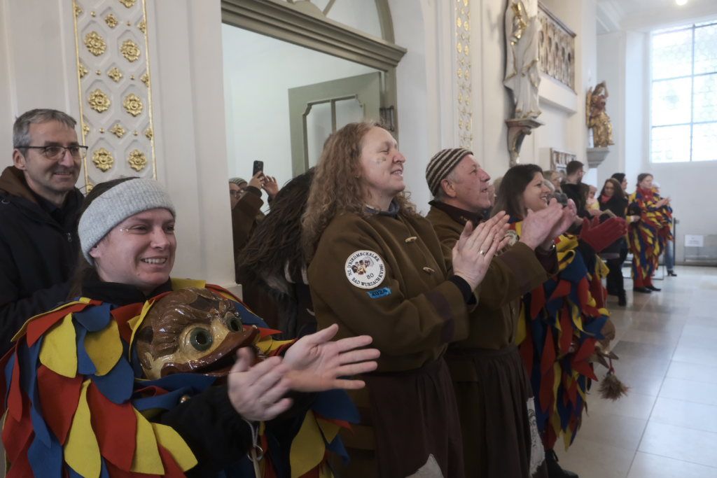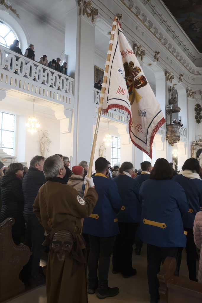 Schwungvoll mit dem aus „Sister Act“ bekannten musikalischen Glaubensbekenntnis „I will follow him“ geleitete die Stadtkapelle die Hästräger aus der Kirche, auf die bereits der Bus zum nächsten Narrensprung wartete. Die anderen Gottesdienstbesucher verharrten noch und forderten durch ihren Applaus vehement eine Zugabe, die sie dann auch bekamen.