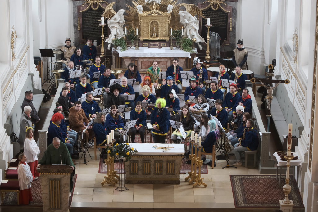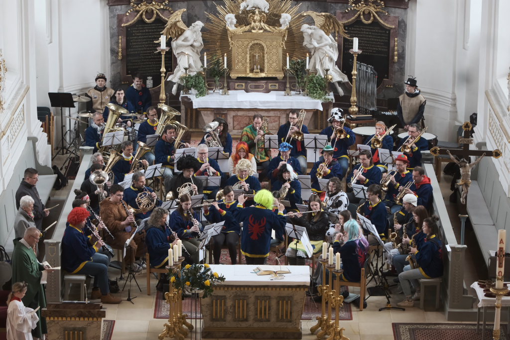 Bad Wurzach – Zum elften Mal begleitete die Stadtkapelle die Narrenmesse in St. Verena musikalisch. Pfarrer Stefan Maier, der seine Predigt wieder einmal in Versform hielt, konnte sich über eine vollbesetzte Stadtpfarrkirche freuen.