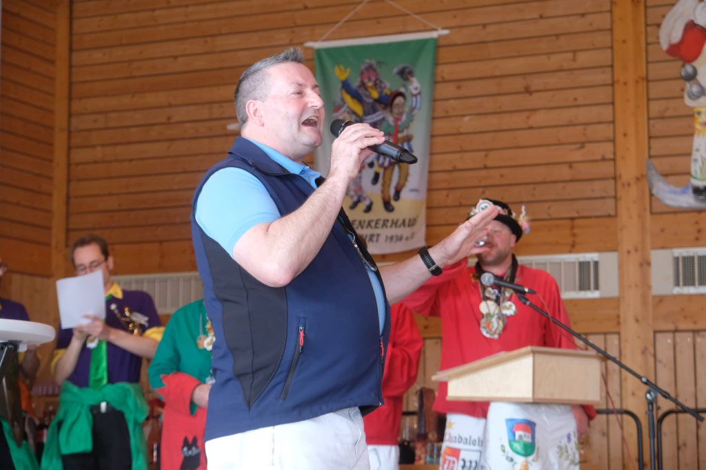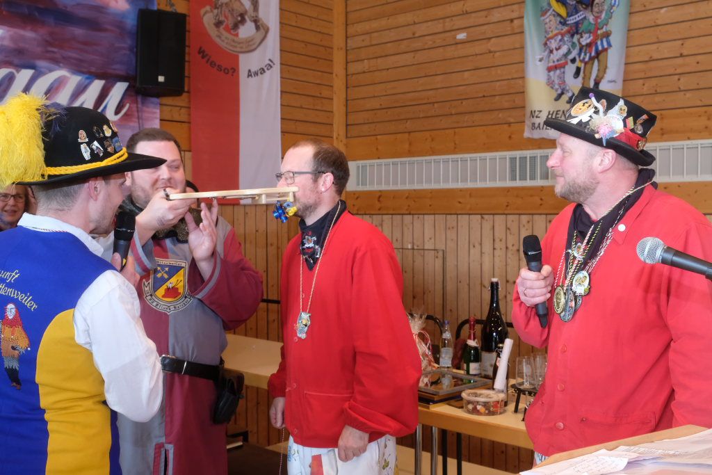 Apropos musikalische Beiträge: Auch Freddy Holzmüller, der bei Stimmungsabenden mit seiner Musikkapelle Ziegelbach häufig zum Mikrofon greift, hatte sich nicht lumpen lassen und für die Narrenzunft ein eigenes Lied geschrieben, mit dem er die Stimmung beim Zunftmeisterempfang so richtig anheizte.