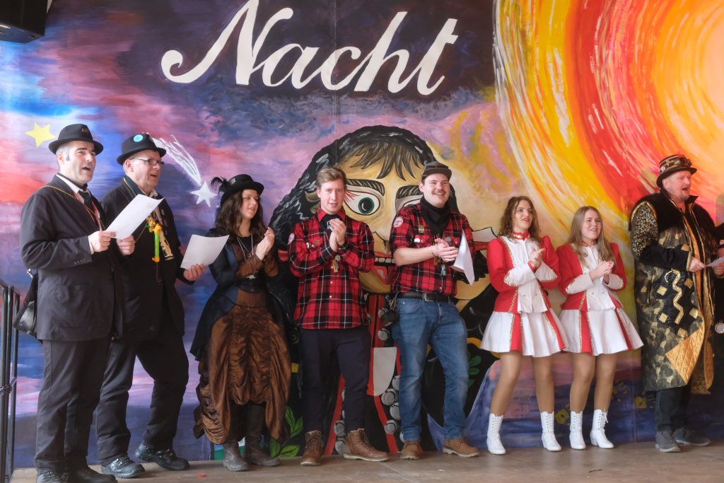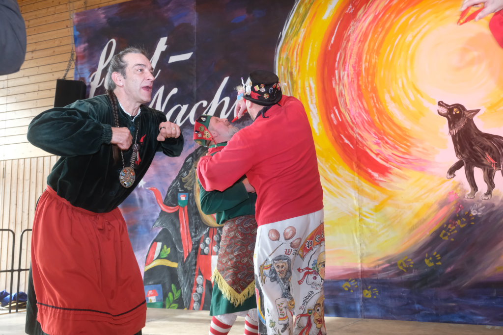 Weil Zunftmeister und Vize durch die Aktionen der Kollegen ganz den Überblick verloren hatten, wer schon auf der Bühne war, machte Wasi kurzerhand aus der Not eine Tugend: So rief er kurzerhand alle Musikanten und die Vertreter der einheimischen Zünfte en bloc auf die Bühne.