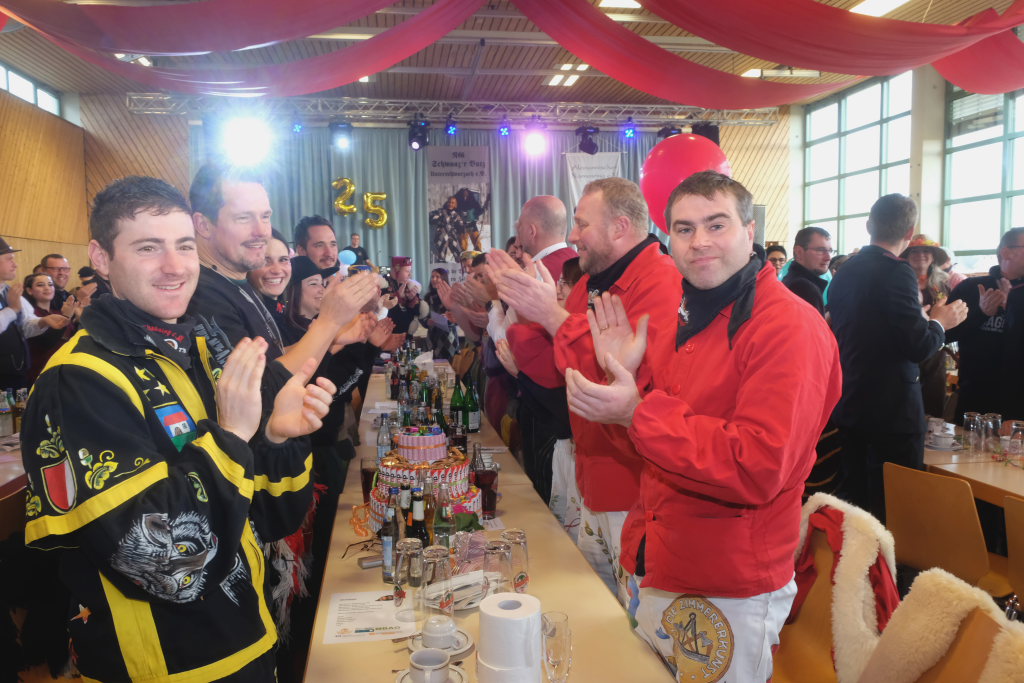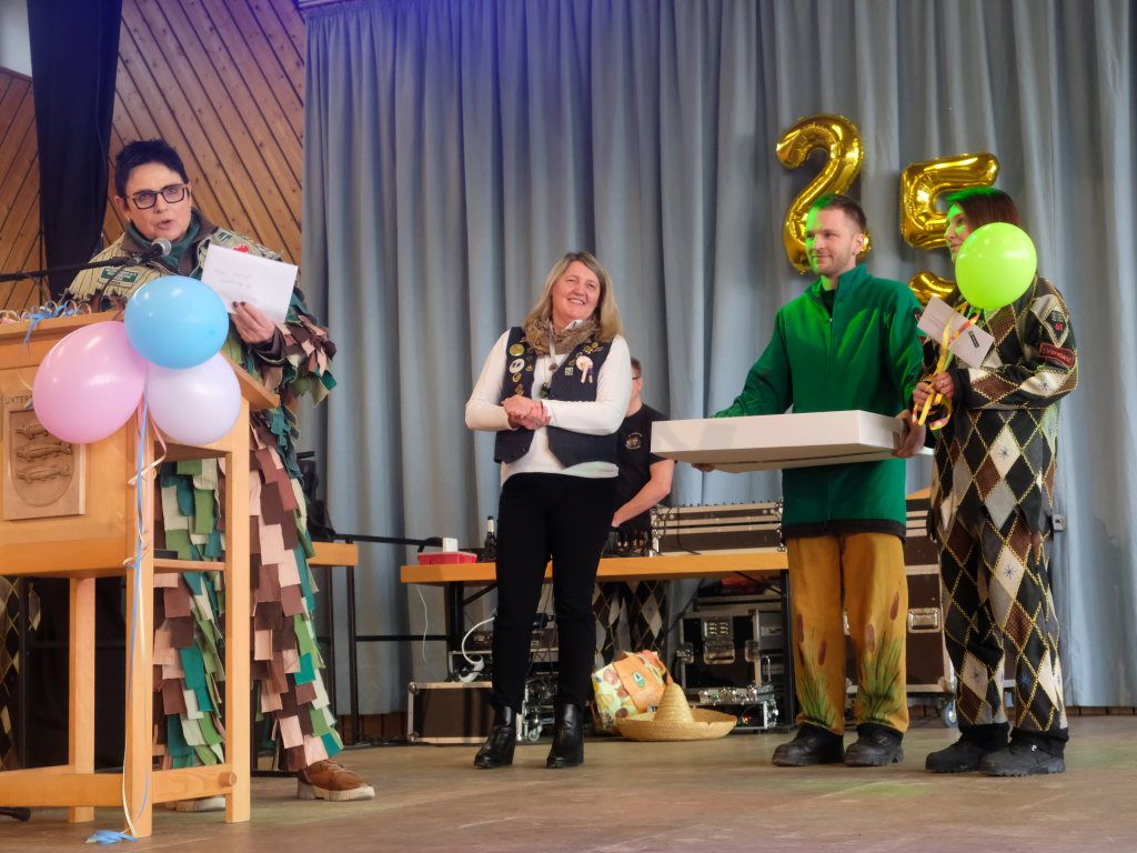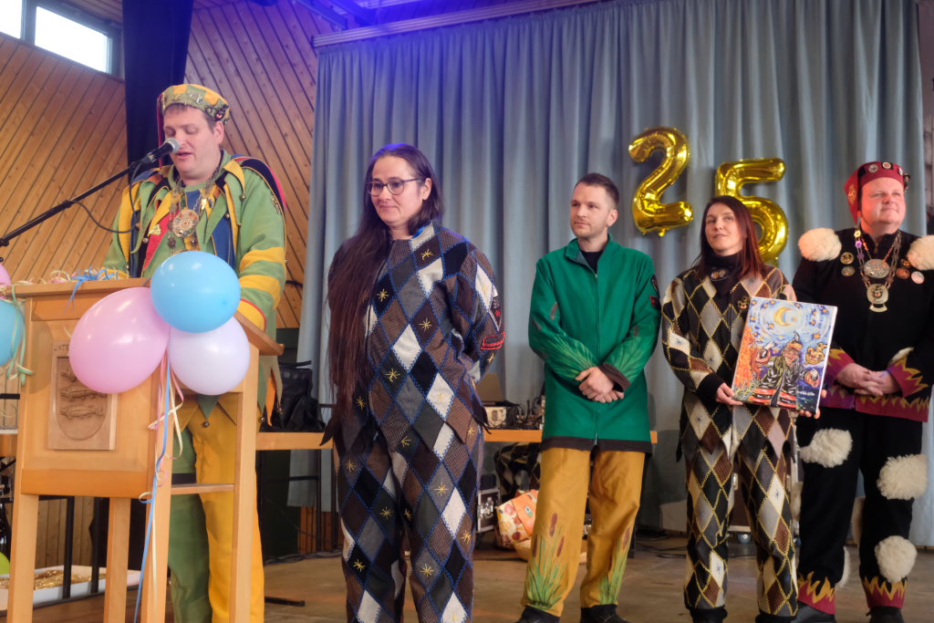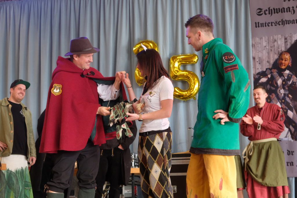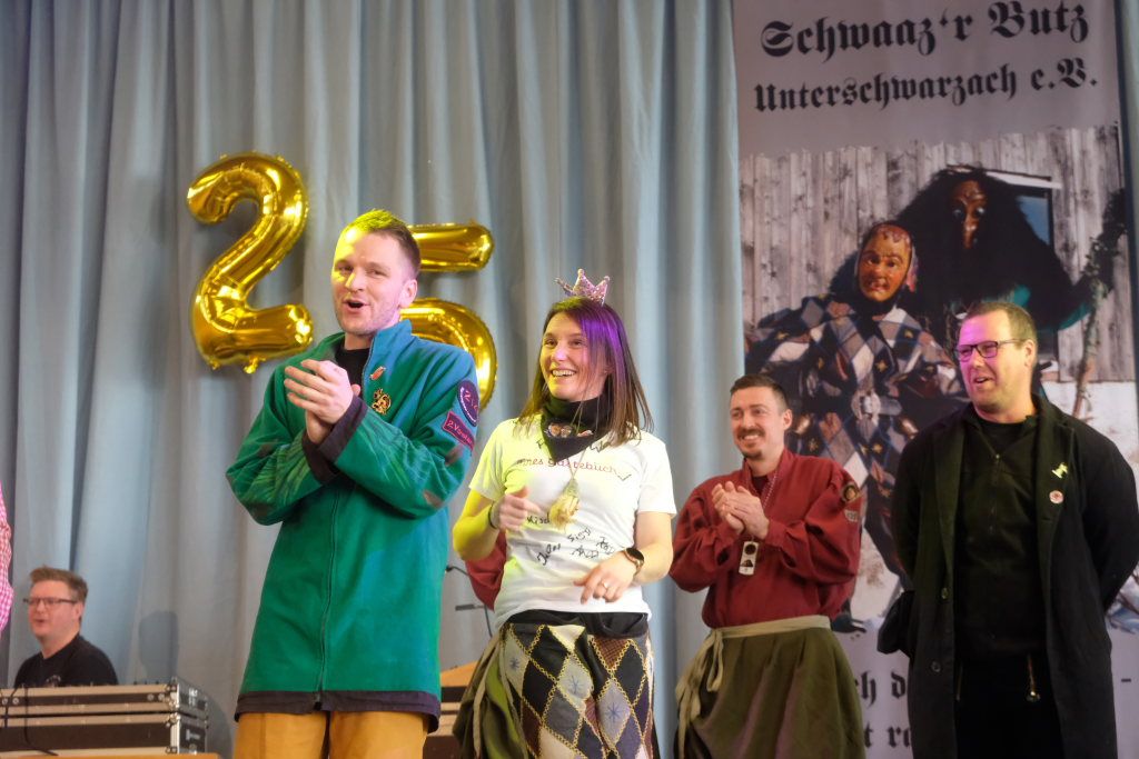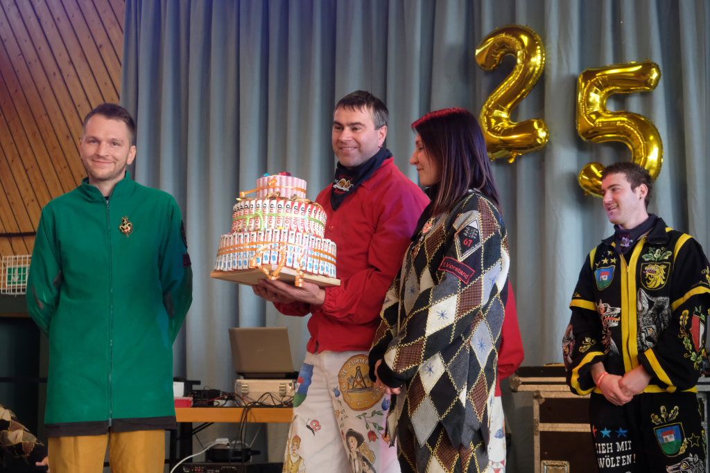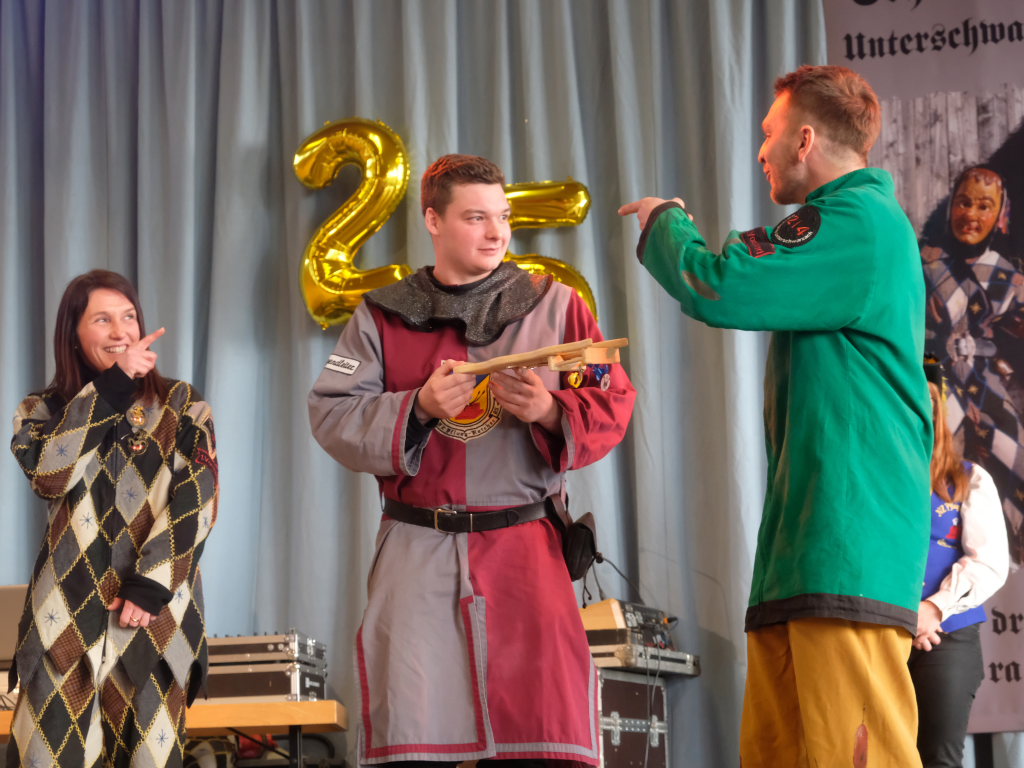 Die Narrengilde Unterschwarzach, die seit 2013 dem ANR angehört, feierte am vergangenen Samstag (25.1.) mit einem kleinen Narrensprung ihr 25-jähriges Jubiläum (siehe Extra-Bericht). Beim Zunftmeisterempfang am Vormittag wurden Vize Stefan Kiebler und Säckelmeisterin Claudia Vögele auf Antrag des Vereins mit dem Hästrägerorden des ANR (Alemannischer Narrenring) ausgezeichnet. Die Ehrung für Zunftmeisterin Bettina „Tine“ Zelzer mit dem Silberkranz-Orden des ANR erfolgte auf die Initiative des ANR und machte die sonst so eloquente Narrenmeisterin sprachlos.
