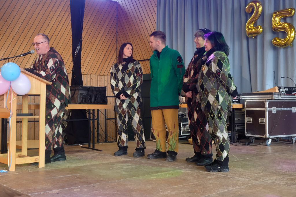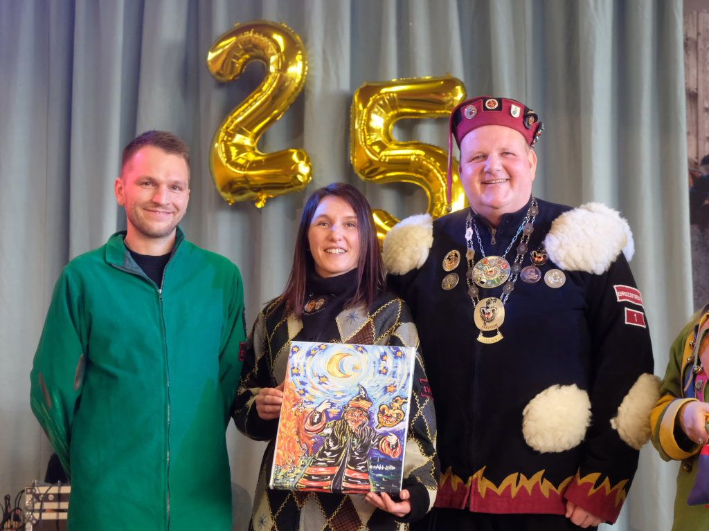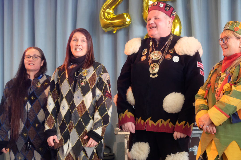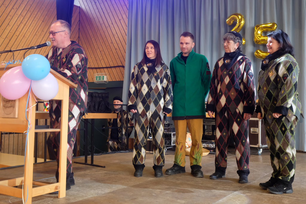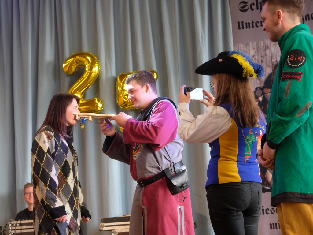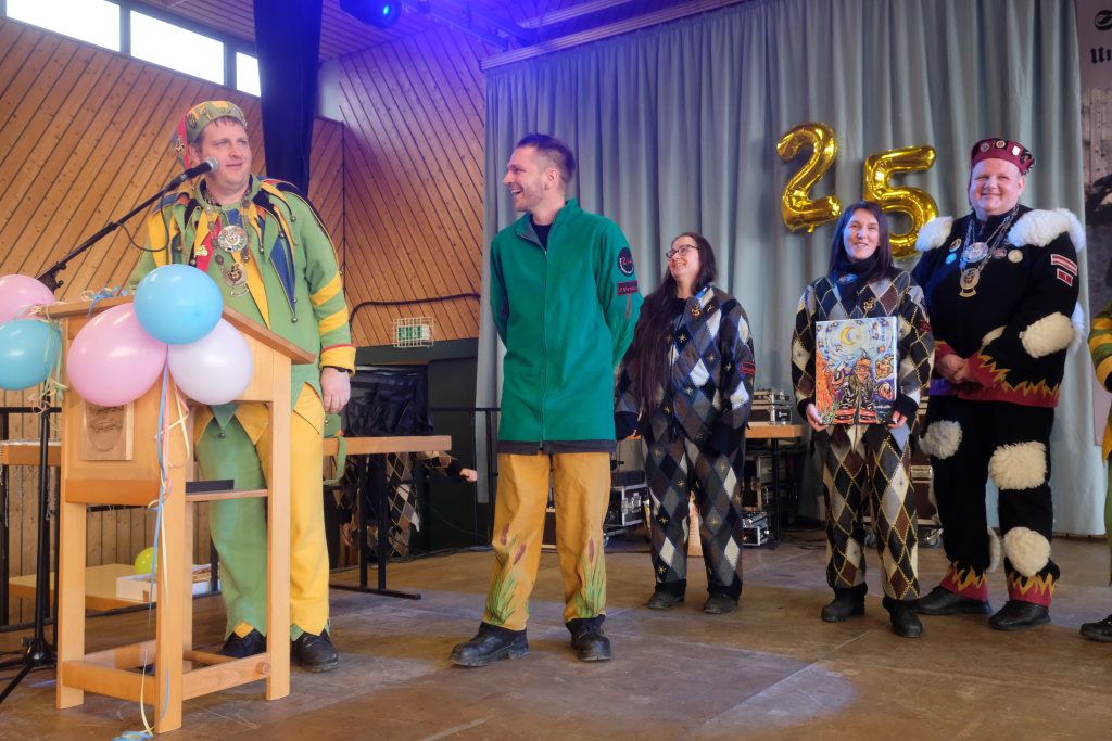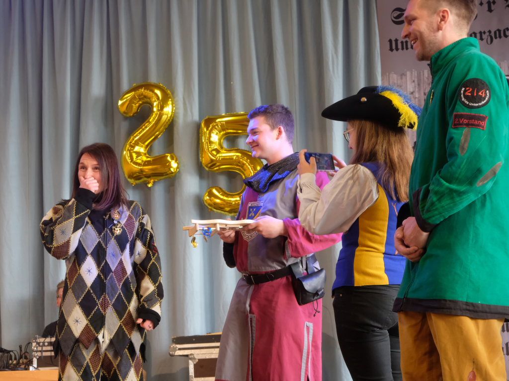 Die Narrengilde Unterschwarzach, die seit 2013 dem ANR angehört, feierte am vergangenen Samstag (25.1.) mit einem kleinen Narrensprung ihr 25-jähriges Jubiläum (siehe Extra-Bericht). Beim Zunftmeisterempfang am Vormittag wurden Vize Stefan Kiebler und Säckelmeisterin Claudia Vögele auf Antrag des Vereins mit dem Hästrägerorden des ANR (Alemannischer Narrenring) ausgezeichnet. Die Ehrung für Zunftmeisterin Bettina „Tine“ Zelzer mit dem Silberkranz-Orden des ANR erfolgte auf die Initiative des ANR und machte die sonst so eloquente Narrenmeisterin sprachlos.