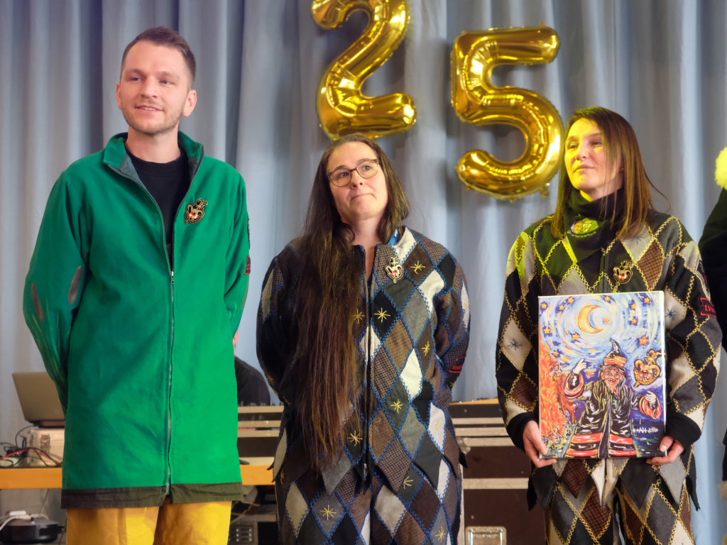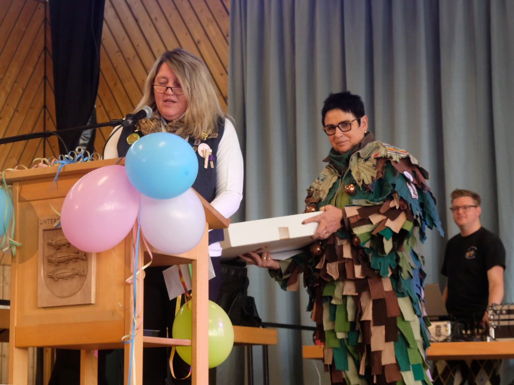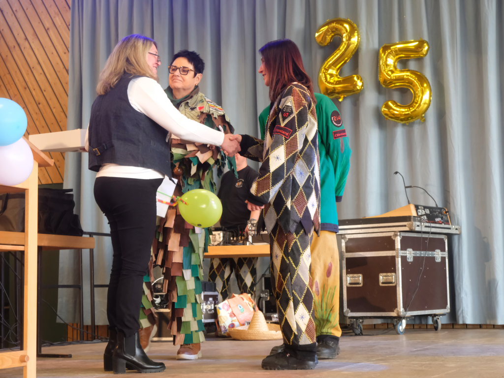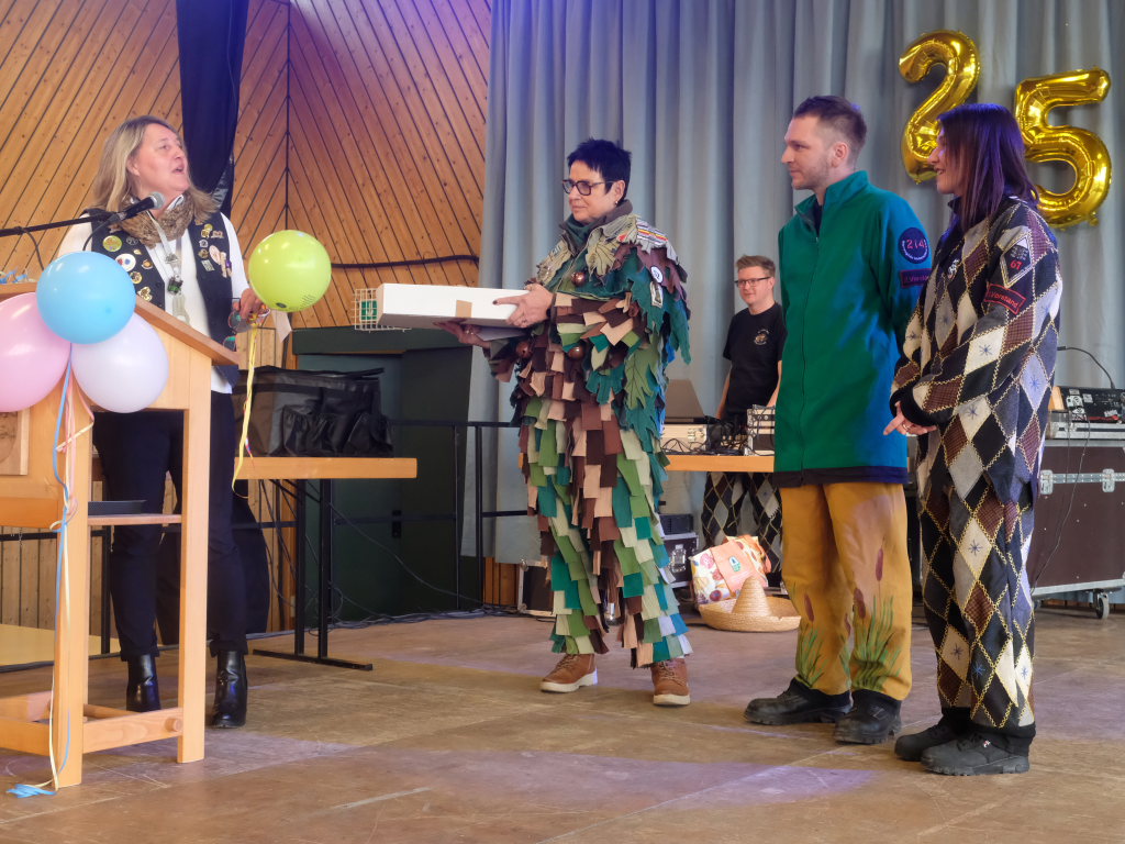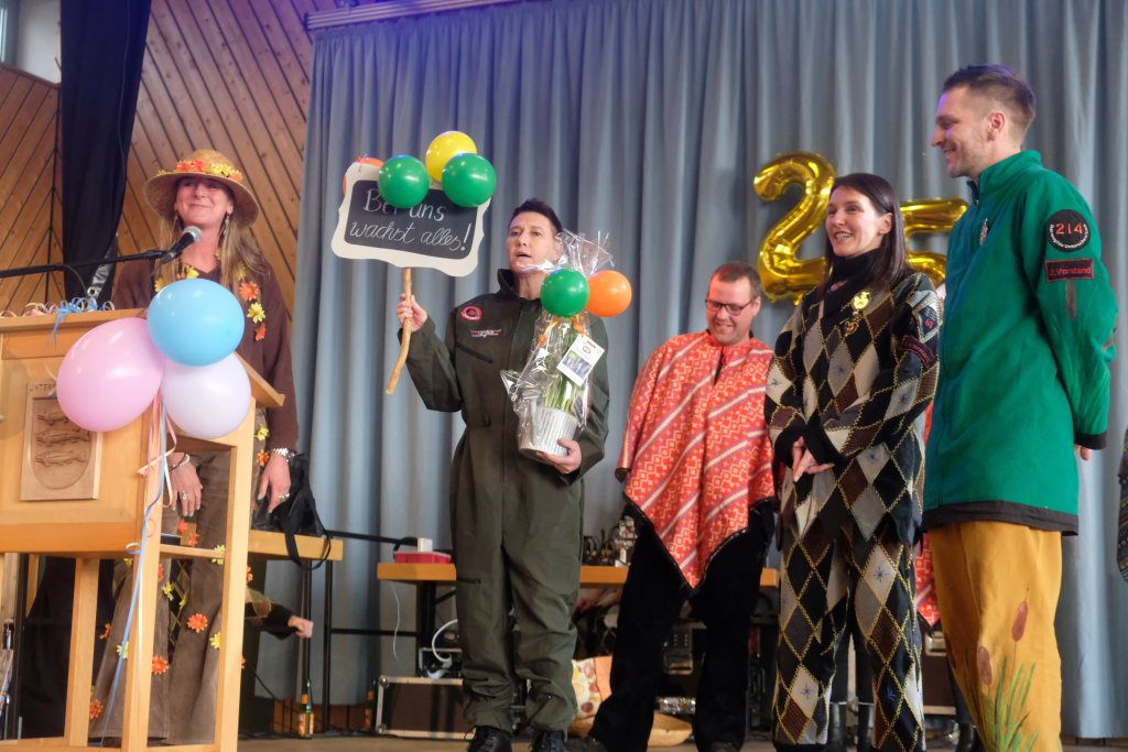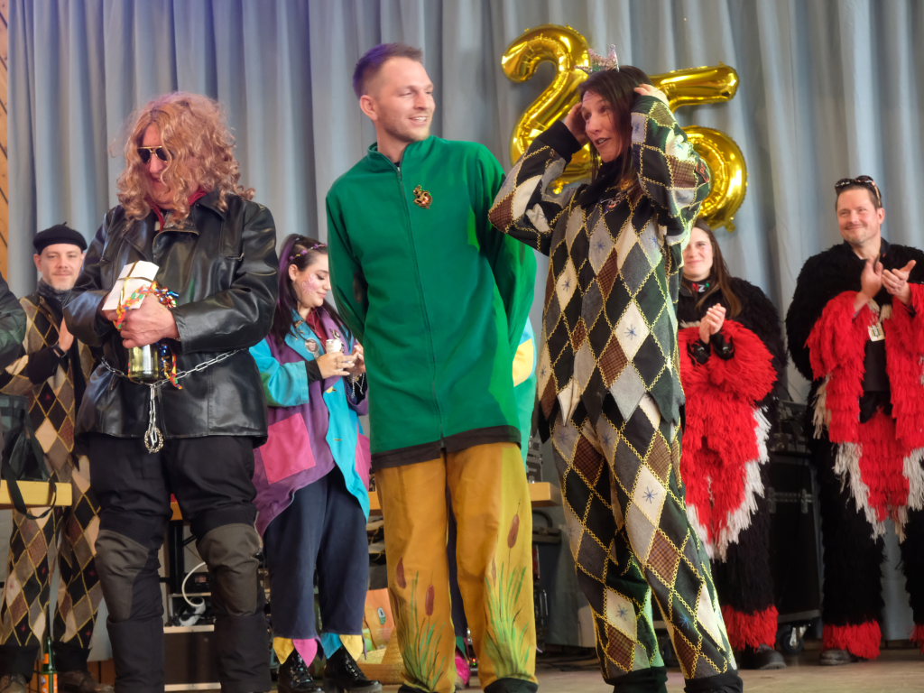 Die Narrengilde Unterschwarzach, die seit 2013 dem ANR angehört, feierte am vergangenen Samstag (25.1.) mit einem kleinen Narrensprung ihr 25-jähriges Jubiläum (siehe Extra-Bericht). Beim Zunftmeisterempfang am Vormittag wurden Vize Stefan Kiebler und Säckelmeisterin Claudia Vögele auf Antrag des Vereins mit dem Hästrägerorden des ANR (Alemannischer Narrenring) ausgezeichnet. Die Ehrung für Zunftmeisterin Bettina „Tine“ Zelzer mit dem Silberkranz-Orden des ANR erfolgte auf die Initiative des ANR und machte die sonst so eloquente Narrenmeisterin sprachlos.