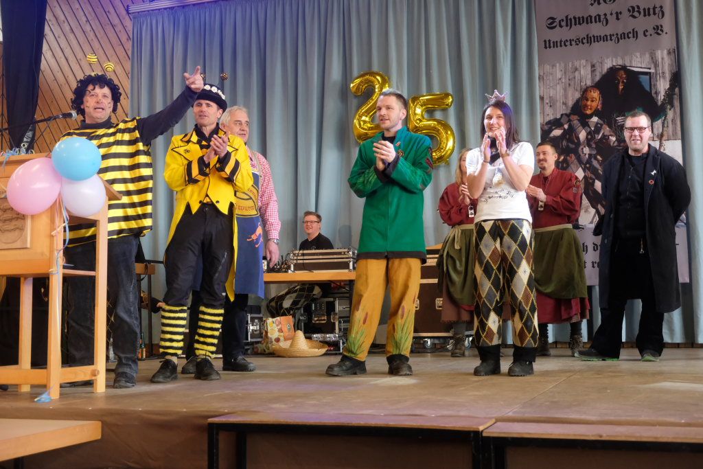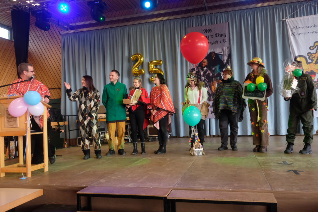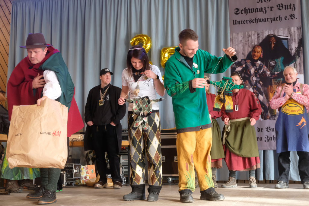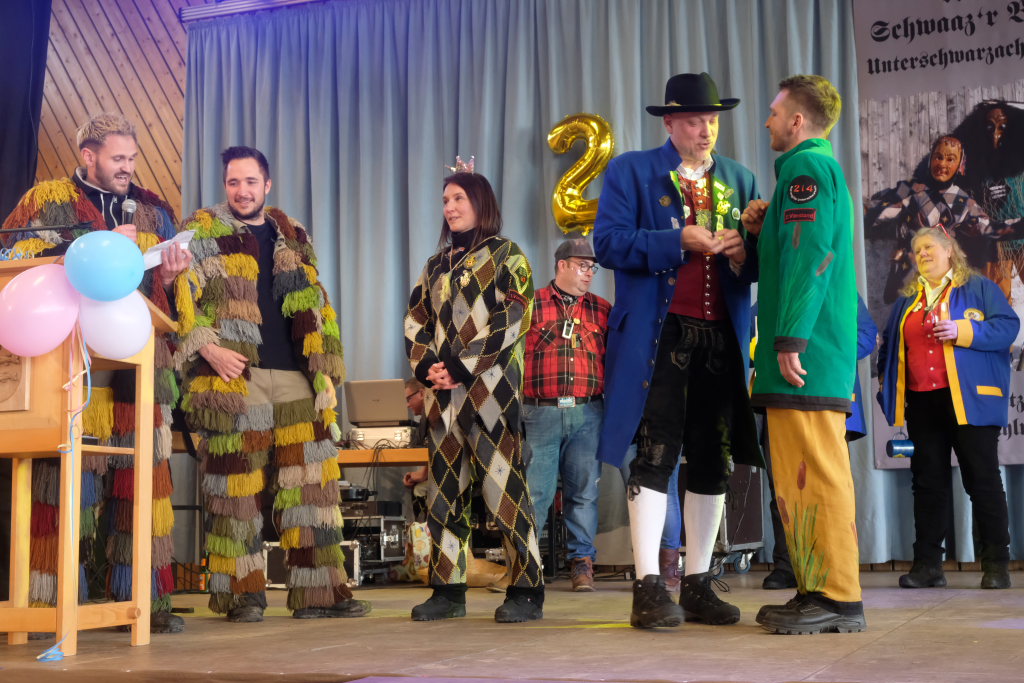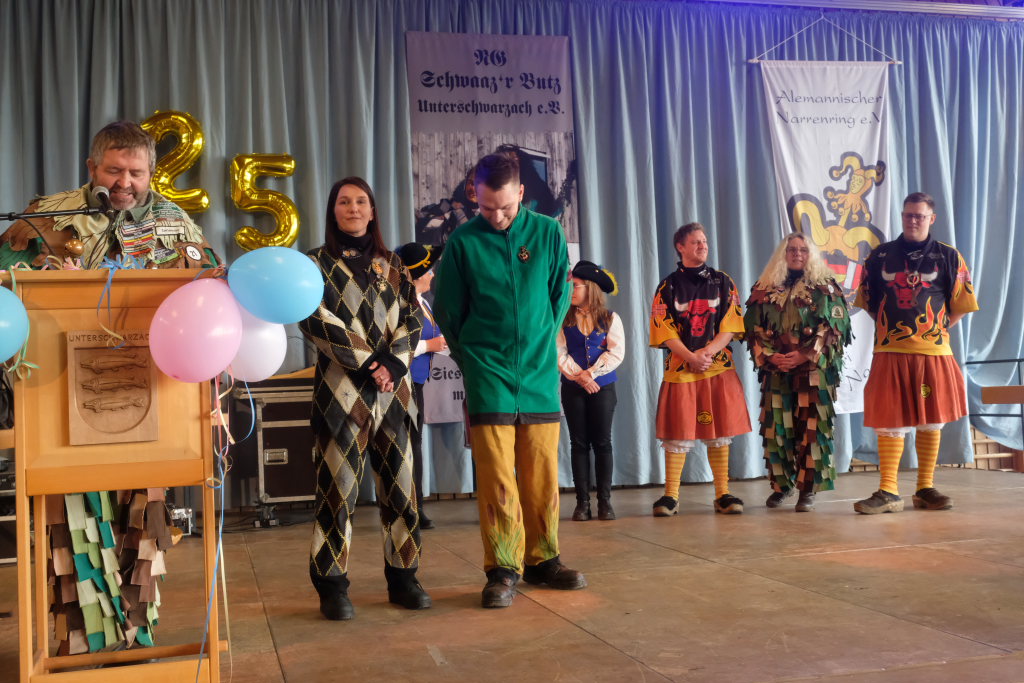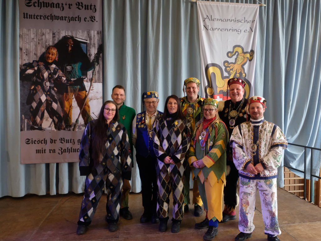 Mit dem Musikverein Harmonie, dem Kindergarten (Narrenruf: „Hurra, Hurra dr Kindi isch do“) und der Grundschule Unterschwarzach (Narrenruf „Bei uns wachst alles“) stellten sich mit Ausnahme der „Schwaaz´r Gang“ zunächst die ortseigenen Gruppen vor. Die dann gleich mit dem Lied vom Schwaaz´r Butz die Stimmbänder der Zunftmeister auf die Probe stellten.