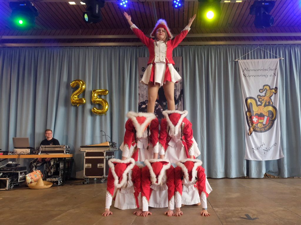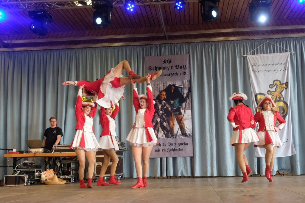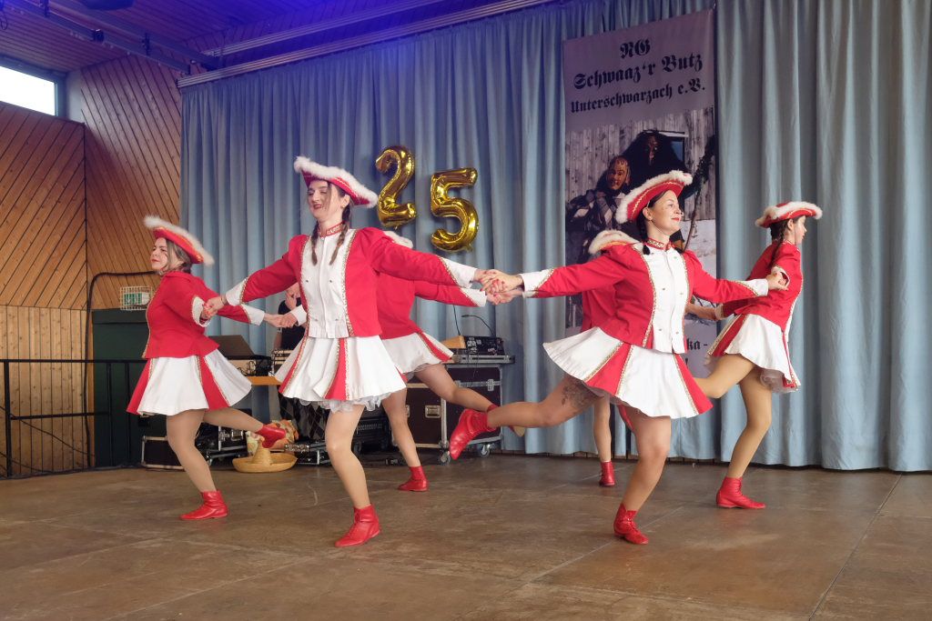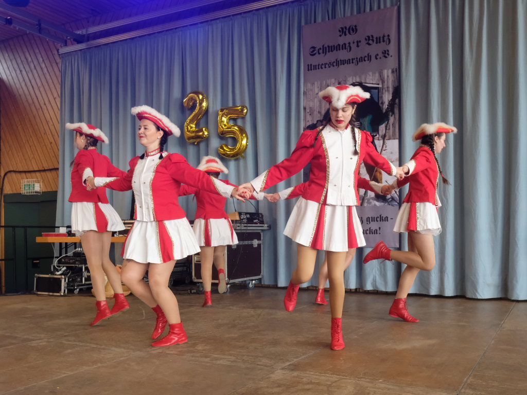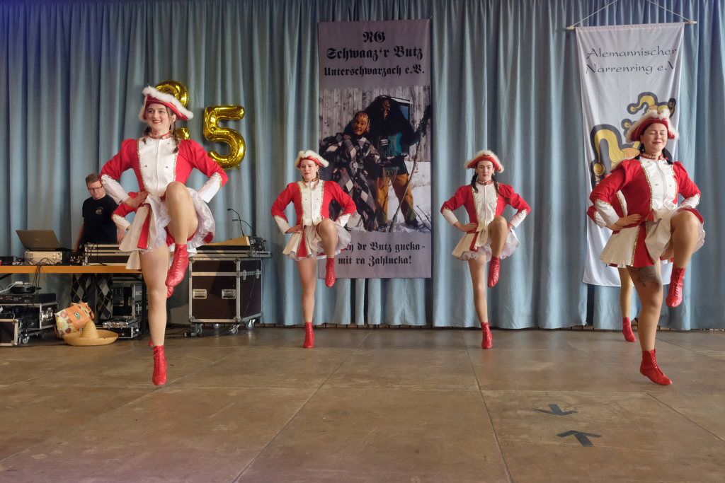 Nach all den Ehrenbezeugungen war es dringend erforderlich, dass wieder Fasnetsstimmung in die Halle kam. Wer wäre da besser geeignet als die sechs reizenden Damen der Unterschwarzacher Garde, die mit ihren beiden Tänzen auf die eigentlichen Aufgaben des Zunftmeisterempfangs einstimmten.