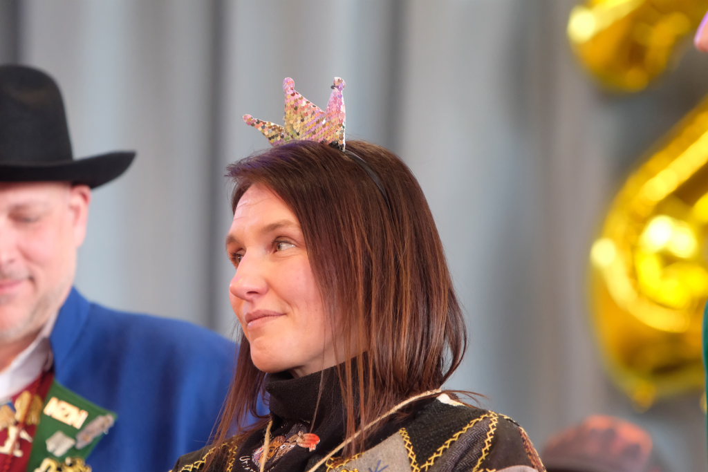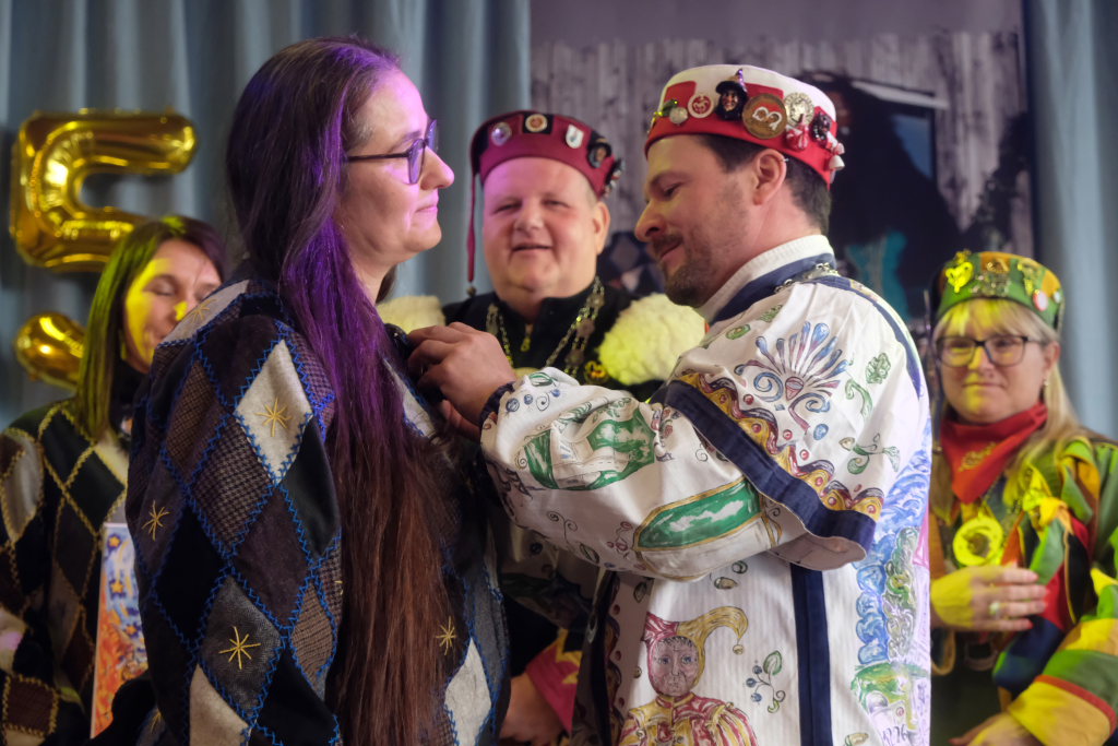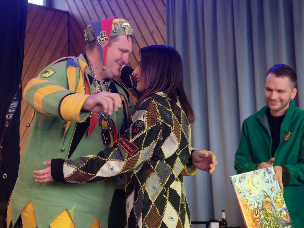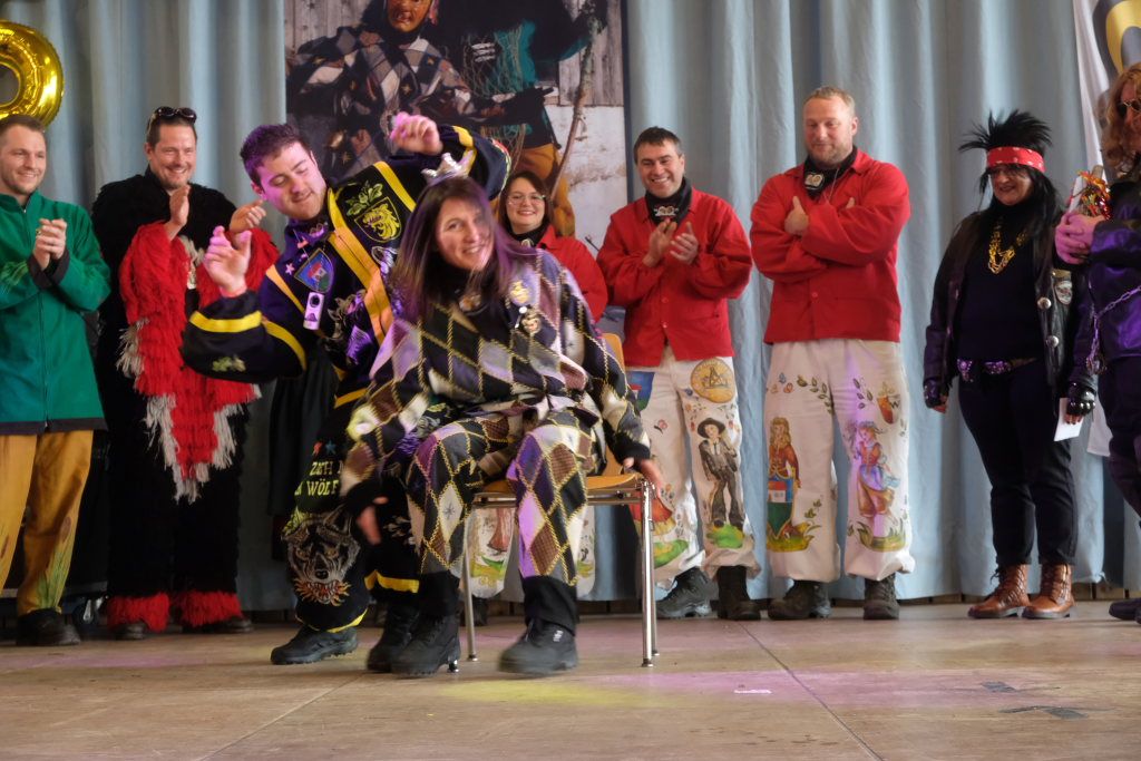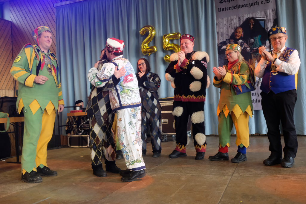 Als Jürgen Hanser dann noch einmal in seine Tasche griff, um einen weiteren Orden, der auf ein rotes Samtkissen gebettet war, zutage förderte, wurde es im still im Saal. Denn dass Zunftmeisterin Bettina „Tine“ Zelzer den Silberkranz-Orden auf Vorschlag des ANR-Präsidiums erhielt, verschlug der Geehrten erst einmal die Sprache. Mit dem höchsten je an einen Unterschwarzacher Narren vergebenen Orden honorierte der ANR ihre Verdienste für die Narrengilde, lange Jahre als Vize und ab 2019 dann als Chefin. Die Wertschätzung der ANR-Granden basiert ebenfalls auf ihrer Persönlichkeit, denn wenn sie beim Zunftmeisterausflug nicht dabei wäre, würde einfach etwas fehlen.