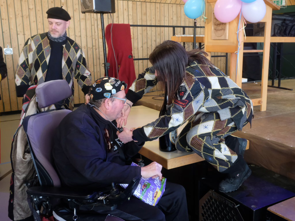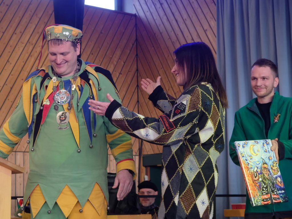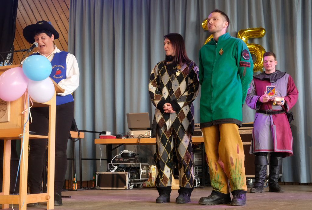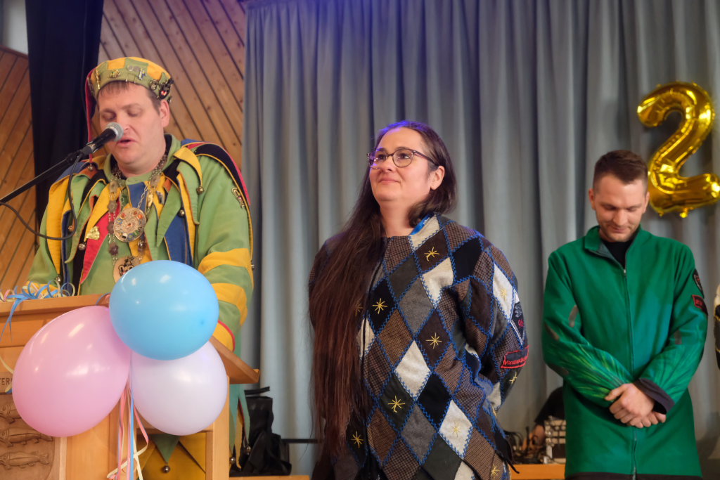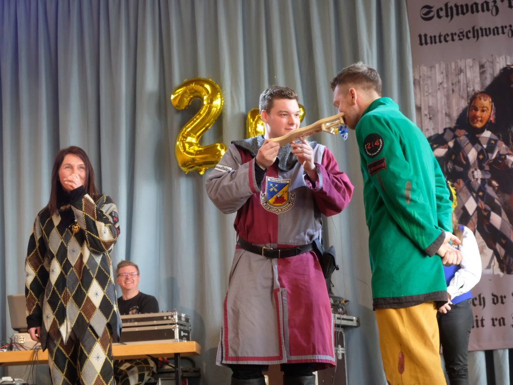 Mit dem Hästrägerorden des ANR wurde die langjährigere Kassiererin der Narrengilde, Claudia Vögele, die sich bei der Narrengilde seit 2003 engagiert. 2005 ließ sie sich in den Gilderat wählen und bereits seit 2007 verwaltet sie Finanzen der Narrengilde. Den zweiten Hästrägerorden erhielt der Vizevorstand der Schwaaz´r Butz, Stefan Kiebler an sein Häs geheftet, der von seinem Glück überhaupt nichts ahnte. 2012 Gumpa-Ma, kam Kiebler bereits ein Jahr später in den Gilderat, wurde einige Jahre Maskenwart und übernahm 2019 nach einer Veränderung im Vorstand das Amt des Vizezunftmeisters.
