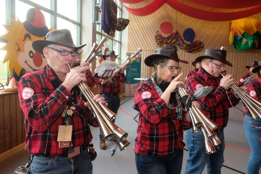 Die aus dem benachbarten und hinter der Kreisgrenze liegenden Hummertsried, zufällig auch die Heimat des Vizezunftmeisters Stefan Kiebler, nach „Usa“ gekommenen Anführer des Brauchtumsvereins Hummertsried (Narrenruf: „Hummel, Hummel mit Humor“), der alljährlich den legendären Narrensprung am Fasnetssamstag ausrichtet, brachten den Gastgebern neben einem Glas Hummertsrieder „Hummelhonig“ einen musikalischen Gruß als Gastgeschenk mit.