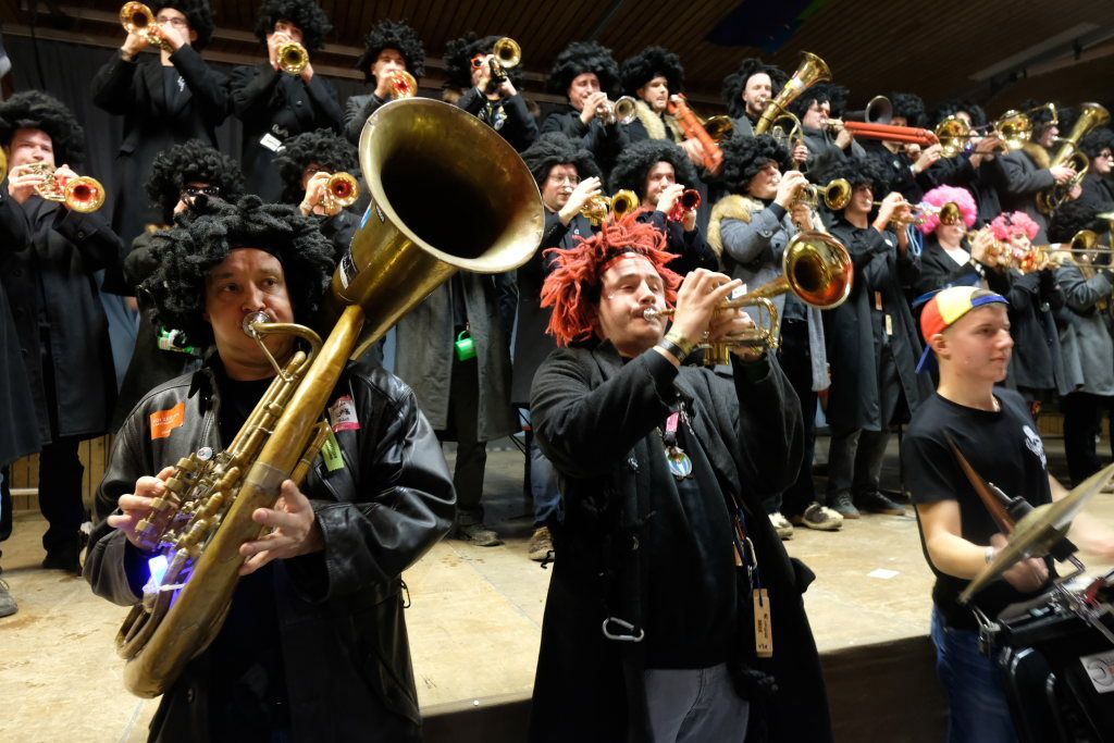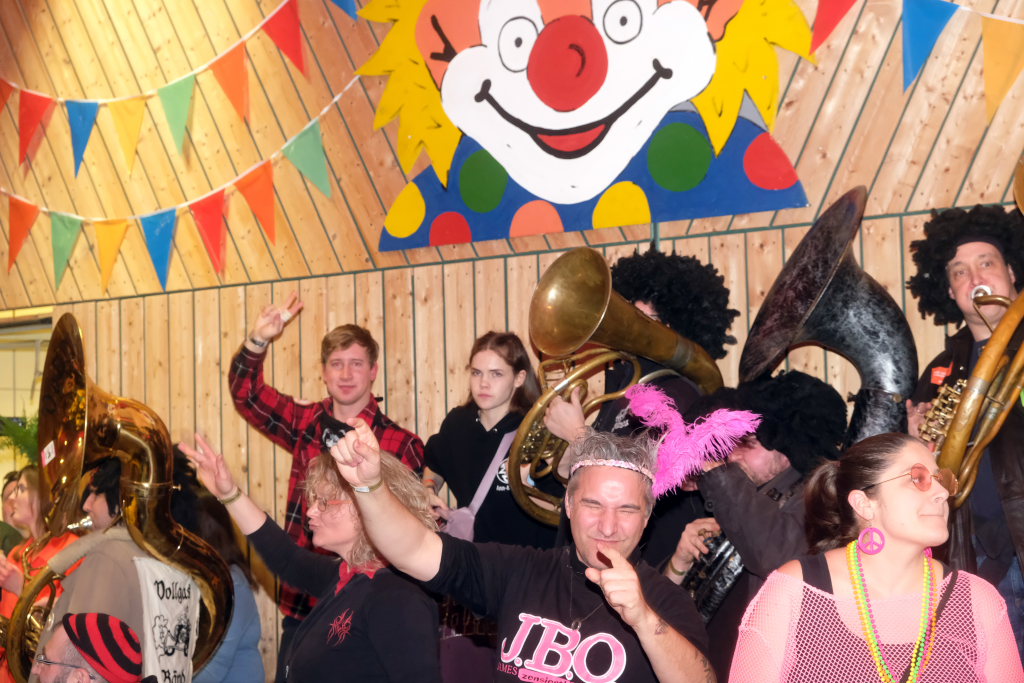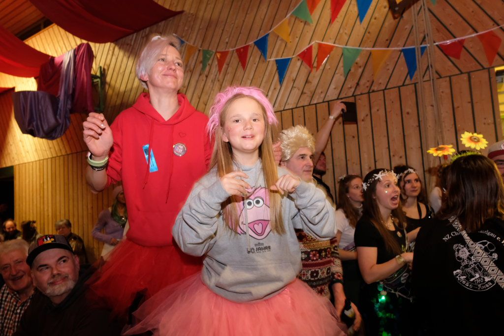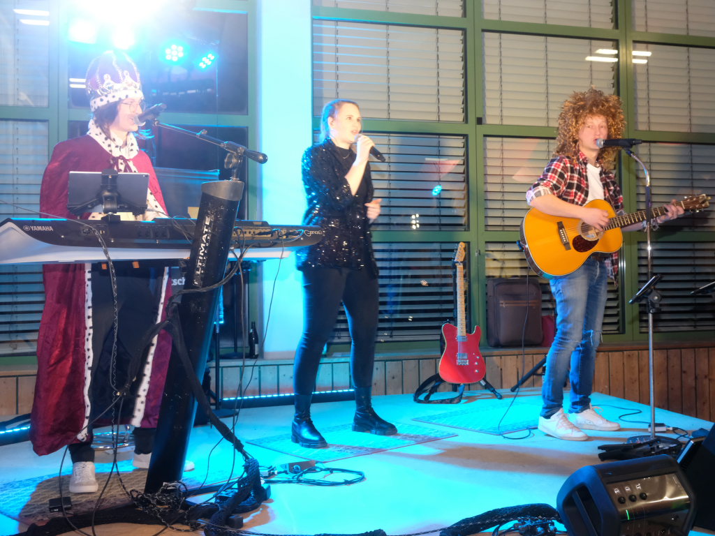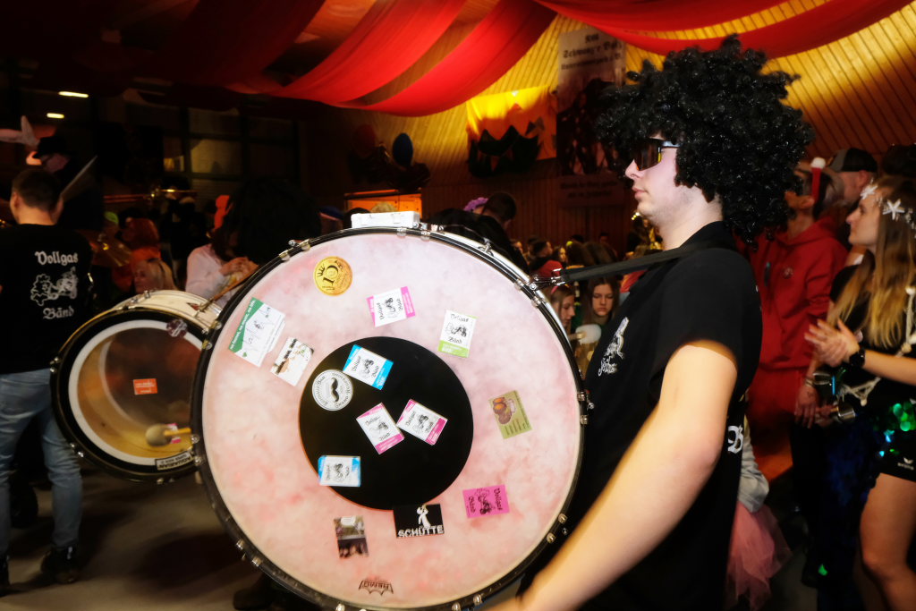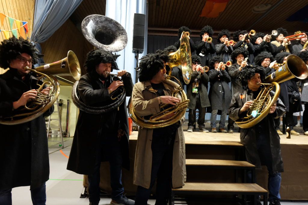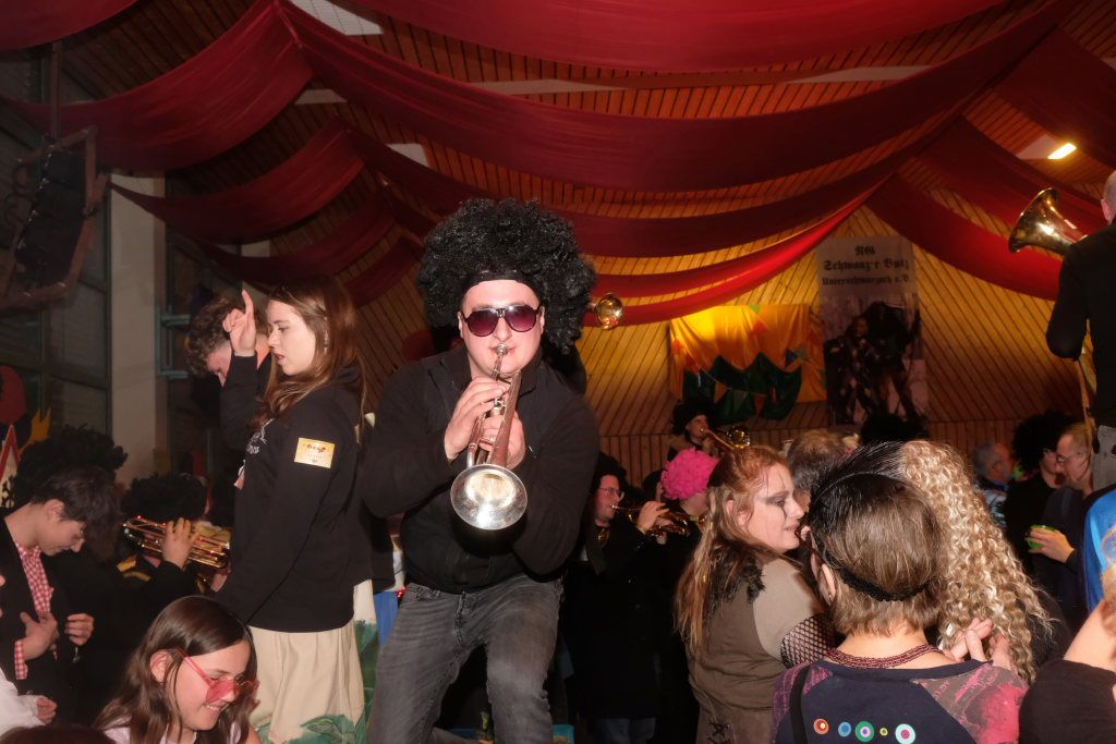 Doch damit war noch nicht ganz Schluss: Denn während viele fleißige Hände die Bühne abbauten und den neuen Bodenbelag der Festhalle zum „Dancefloor“ machten, sorgte im Saal die Vollgas-Bänd aus Seibranz, zum Teil auf den Tischen spielend, für beste Laune bei den „Mäschkerle“ im Saal. Bis dann die Partynacht bis zum Morgengrauen mit Juke-Box und dem Barbetrieb startete.