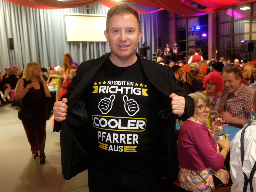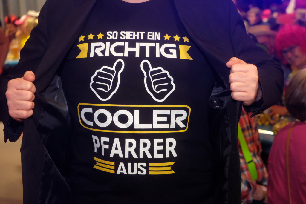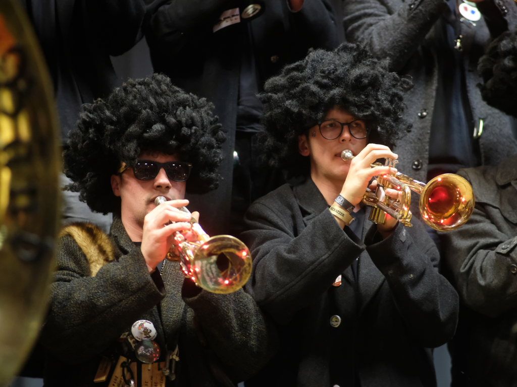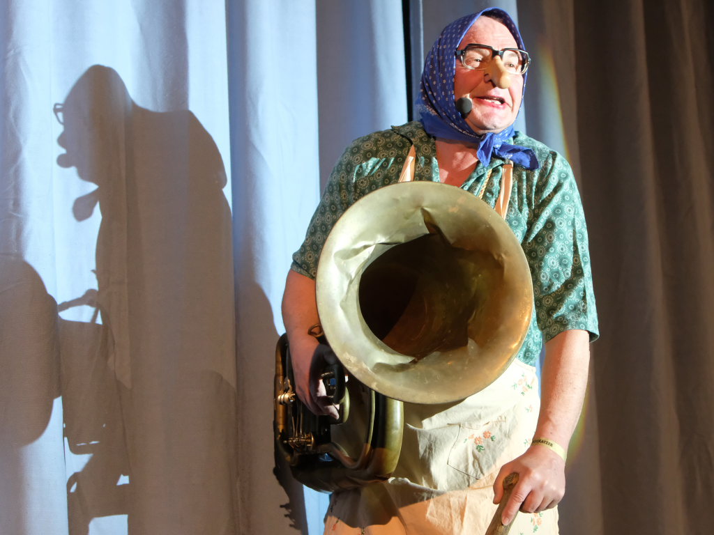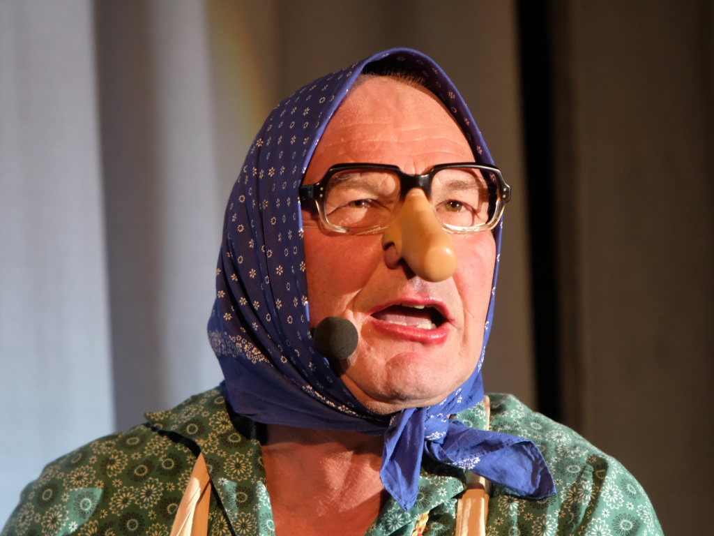 Alljährlich steigt Manfred Ruf in die Bütt. In diesem Jahr wollte er es als skurrile alte Dame, die „wegen des jungen und knackigen Tubisten“ mit Gehstock und Tuba erstmals zur Musikprobe gehen will und dabei ein wenig auch aus ihrem Eheleben plaudert. Auf die Frage, was wohl später auf ihrem Grabstein stehen solle, habe ihr Mann gesagt: „Kalt wie immer.“ Darauf sie über seinen: „Endlich steif.“ Nicht verstehen konnte Ruf, dass es an der Supermarkt-Kasse für Kondome, die ausdrücklich fürs Fremdgehen besorgt wurden, auch noch Treuepunkte geben soll.