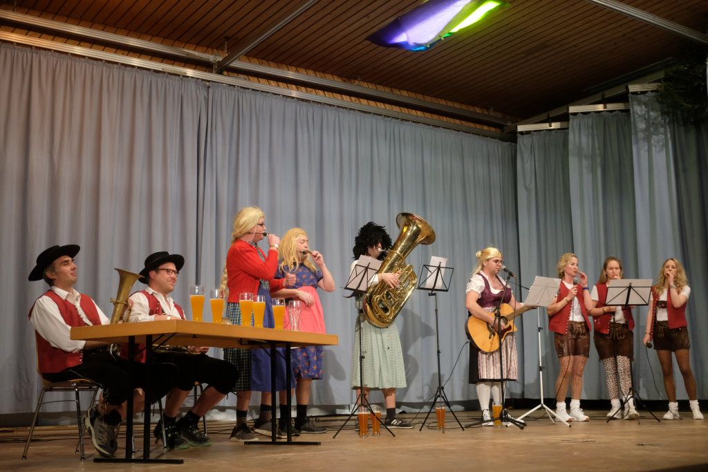 Nach den jungen Damen durften natürlich die männlichen Gegenstücke nicht fehlen. Die Männergarde der LJG konnte – im Rahmen ihrer tänzerischen Möglichkeiten – bei der „Fischerin vom Bodensee“ ebenfalls eine flotte Sohle aufs Unterschwarzacher Bühnenparkett legen.