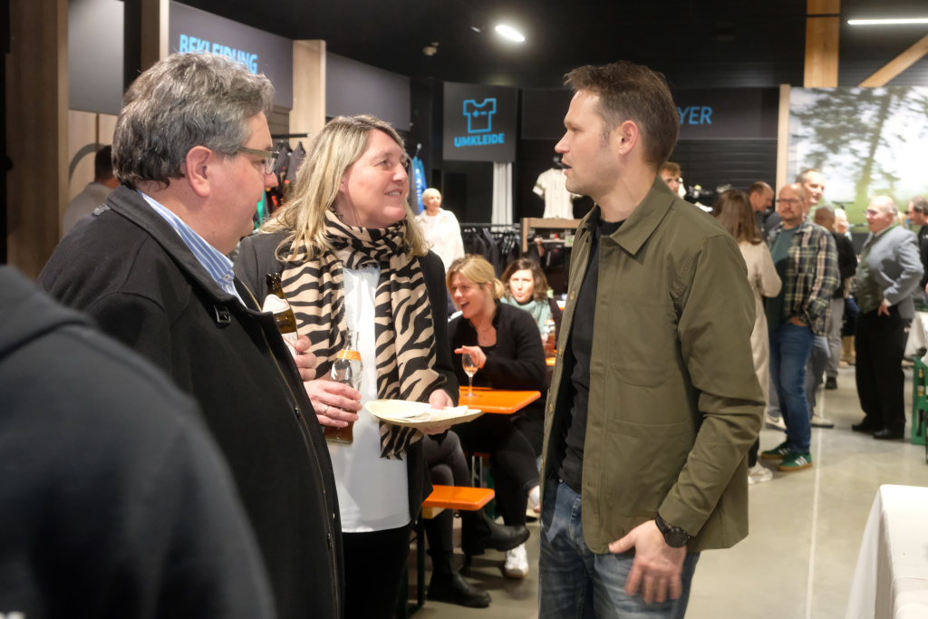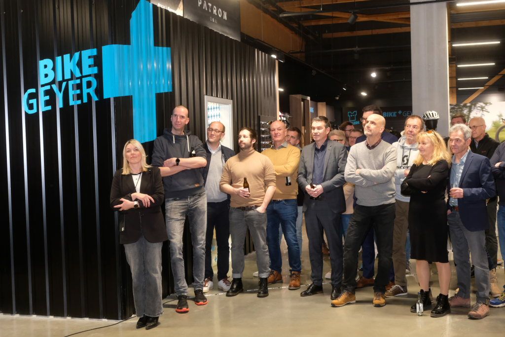 Es war eine illustre Schar an Besuchern, die sich in der beeindruckenden Halle zu der Feier versammelten: Neben den Geschäftsführern der bereits erwähnten BikePlus-Partner, den am Bau beteiligten Handwerkern war auch die Stadtverwaltung mit Bürgermeisterin Alexandra Scherer, Kämmerer Stefan Kunz und Berthold Leupolz, über dessen Schreibtisch als Leiter des Liegenschaftsamtes auch dieses Bauvorhaben gegangen ist, sowie der Landtagsabgeordnete Raimund Haser, der selbst begeisterter Biker ist, gekommen. Auch die Vorstandsspitze des Handels- und Gewerbevereins mit dessen Vorsitzender Christiane Westermayer machte ihre Aufwartung. Der Verlag der Bildschirmzeitung „Der Wurzacher“ war durch Geschäftsführer Manuel Kimmerle mit Frau vertreten (neben Reporter Uli Gresser). Neben den Vertretern der Händler konnte Stefan Geyer auch zahlreiche Vertreter der örtlichen Industrie begrüßen.