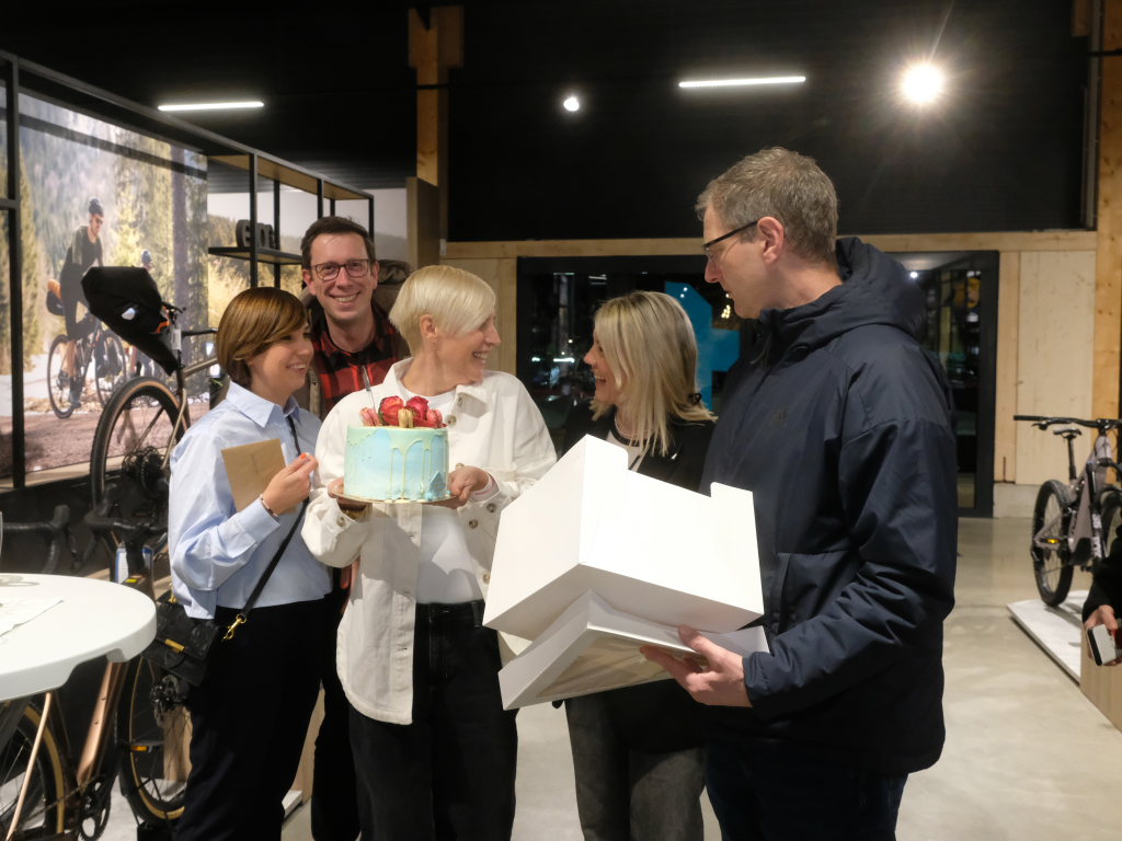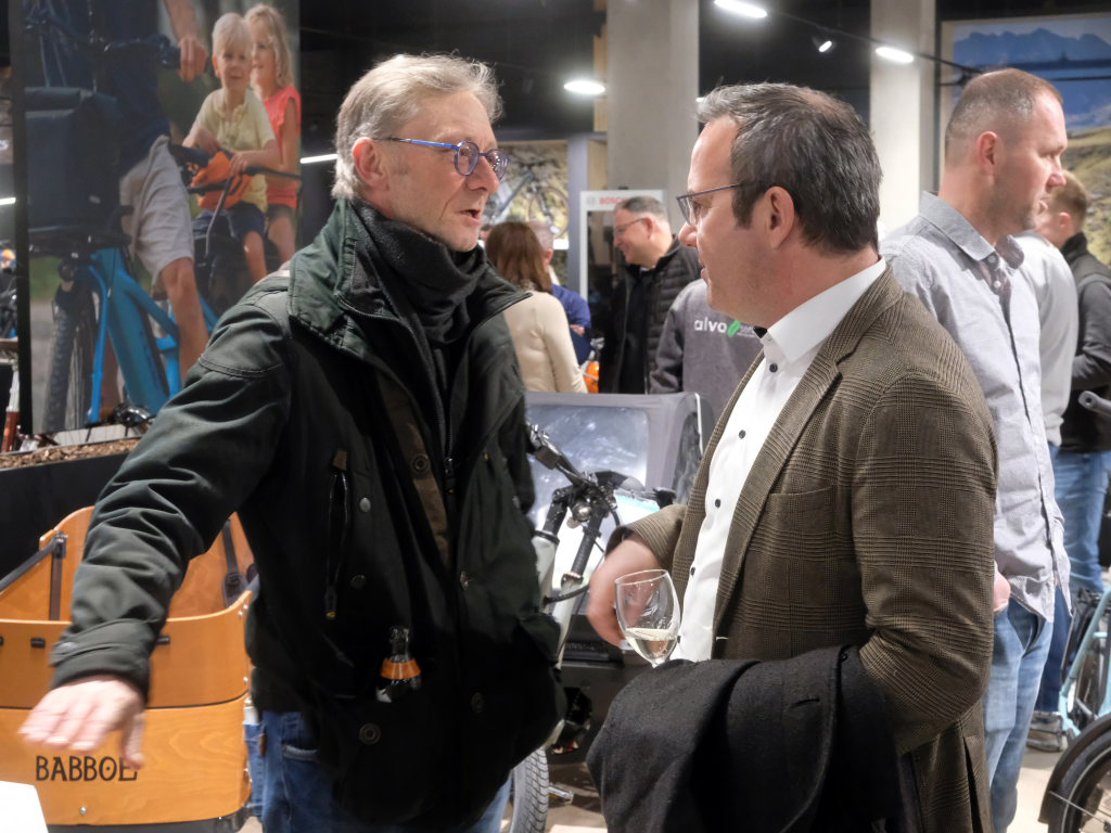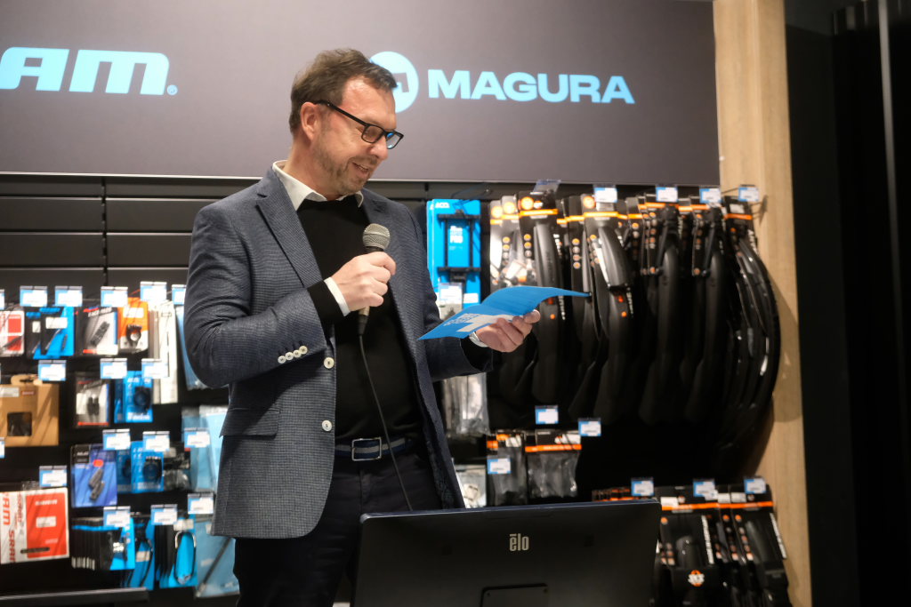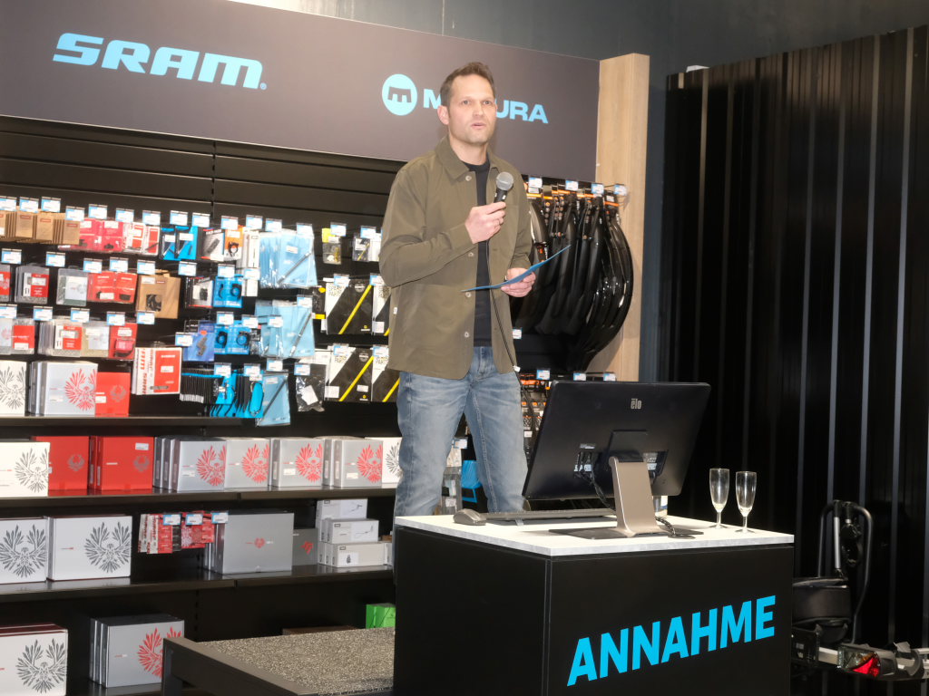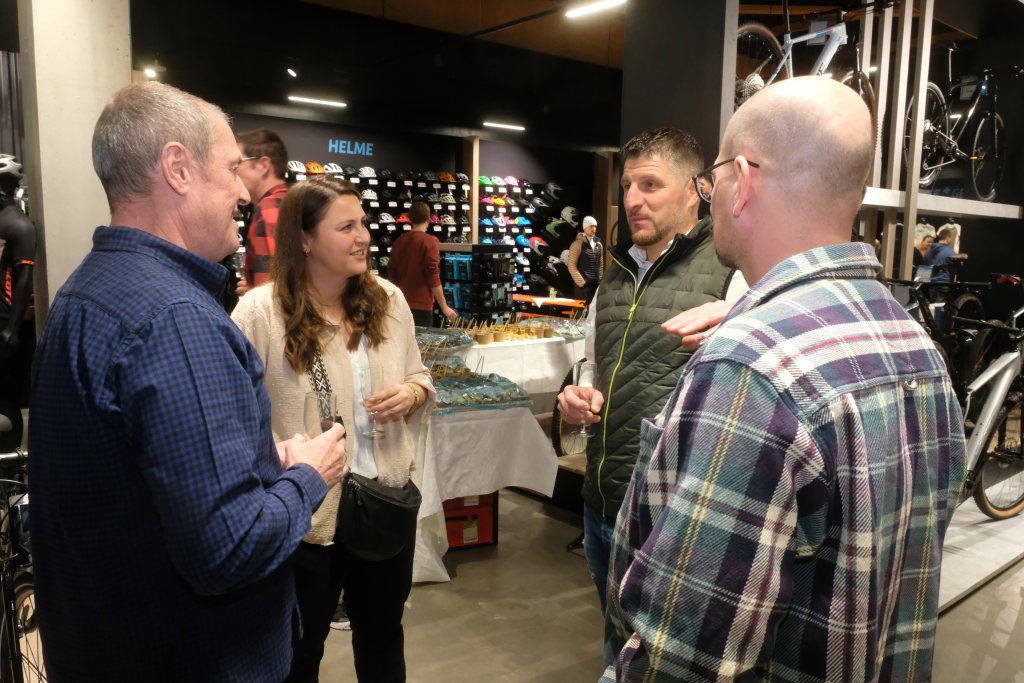Nun habe das „Daily Business“ begonnen und die Gäste seien der beste Querschnitt, altersmäßig, aber auch fitnessmäßig, also Downhill- und Rennrad-Nutzer ebenso wie Menschen, die mit dem E-Bike unterwegs seien. „Das ist es auch, was ich am Zweirad so liebe, es bringt Menschen zusammen.“ Er sei in letzter Zeit oft gefragt worden, warum er das mache und ob er es wieder so machen würde. Um wettbewerbsfähig zu sein, müsse man anders als die anderen sein. Wenn der richtige Zeitpunkt sei, müsse man als Unternehmer wie beim Radfahren einen Gang höher schalten.