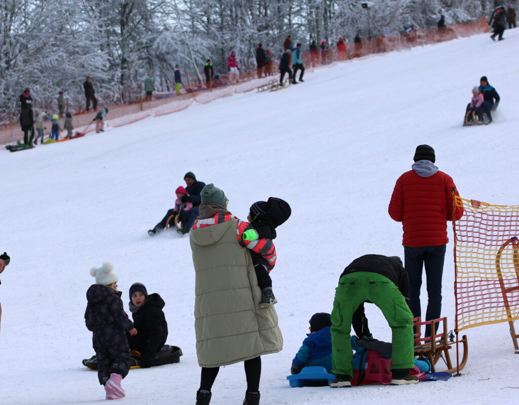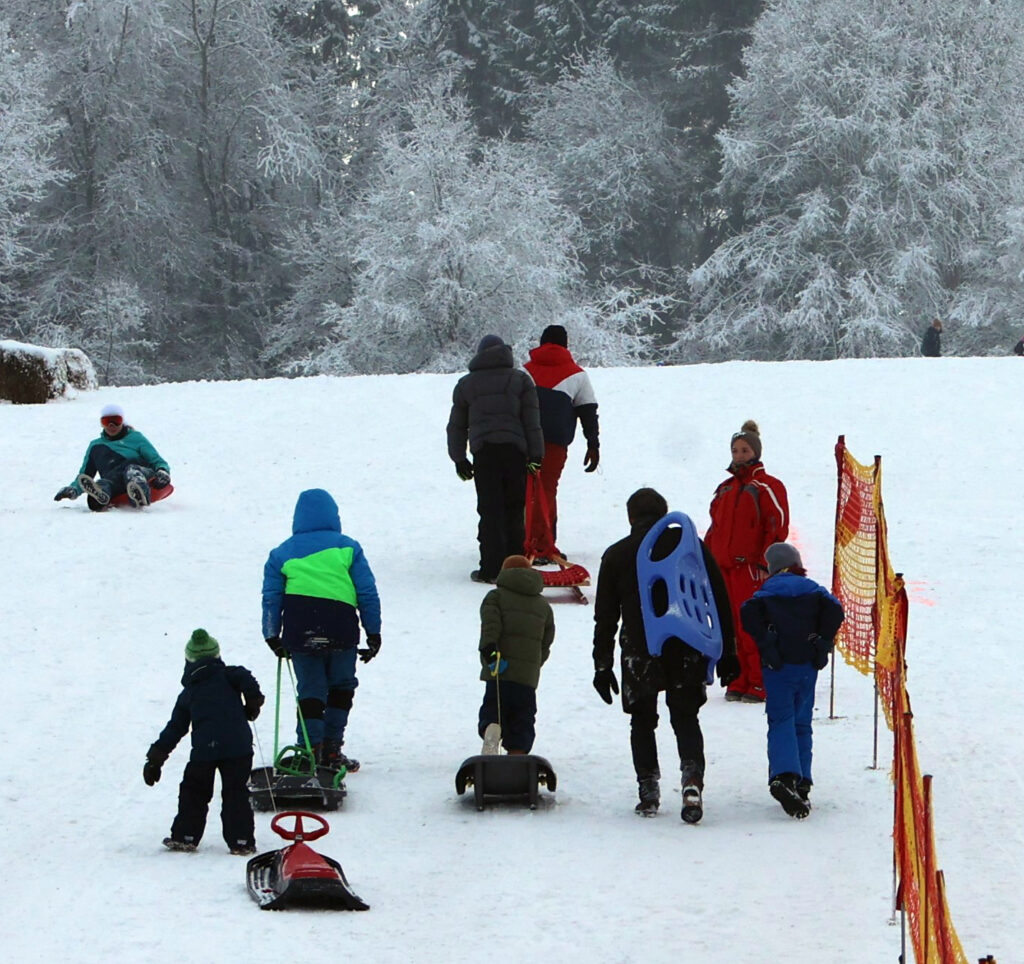 Neben der Skiabfahrt ist noch genug Platz, den Abhang mit dem Rodelschlitten hinabzusausen. Beim Schlittenfahren oder beim Skifahren erleben Familien die wunderschöne Natur des Allgäus aus einer ganz anderen Perspektive.