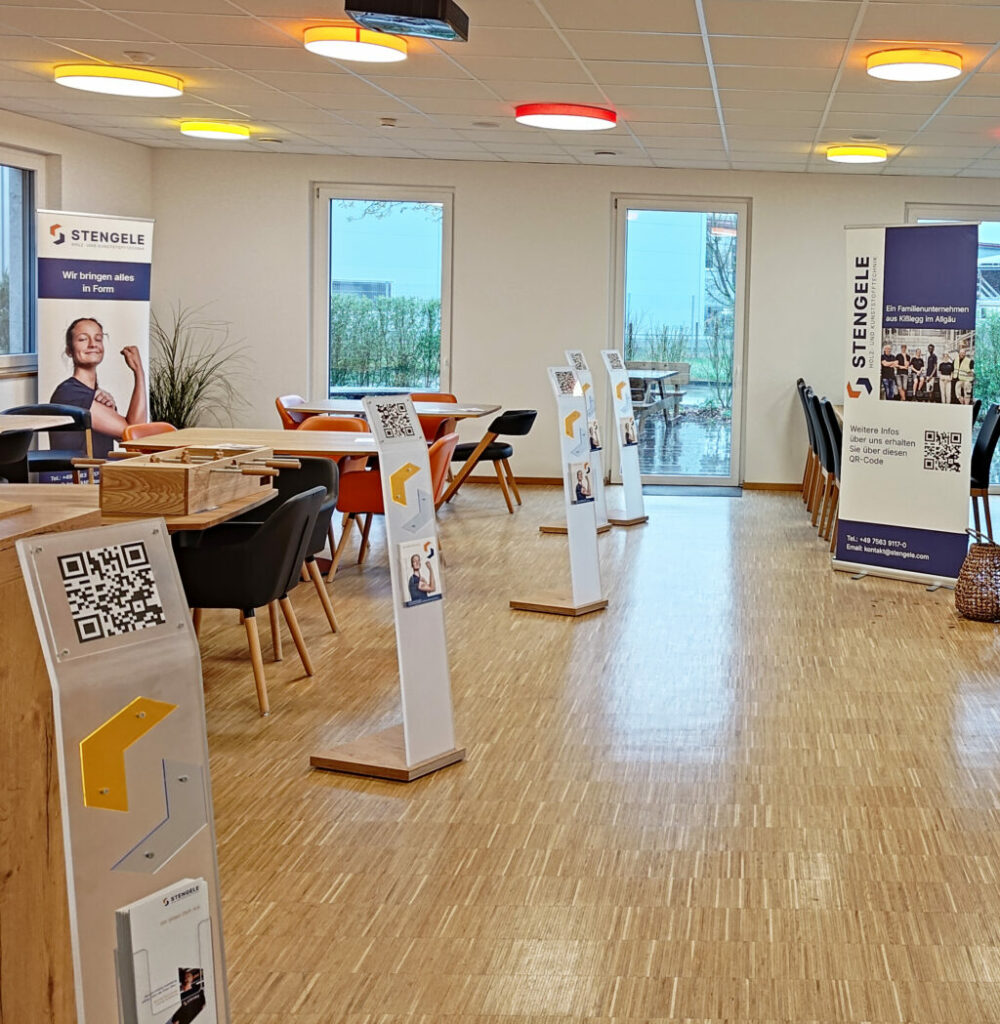 Blick in einen Info-Raum bei Stengele Holz- und Kunststofftechnk (noch vor Eröffnung der Messe). Foto: Stengele